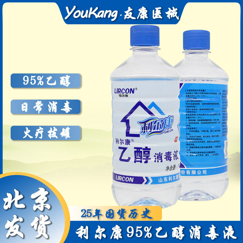 500ml利尔康95%乙醇消毒液拔罐火疗酒精炉皮肤仪器清洁杀菌食品级