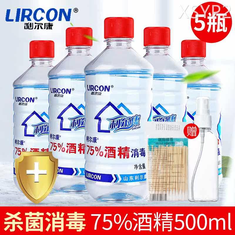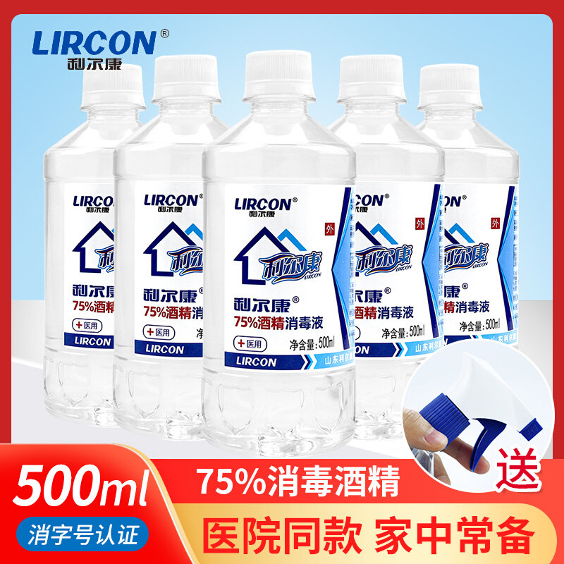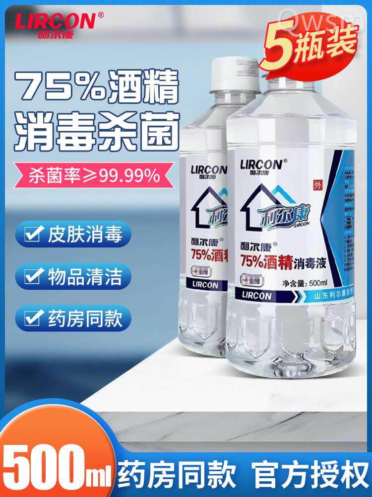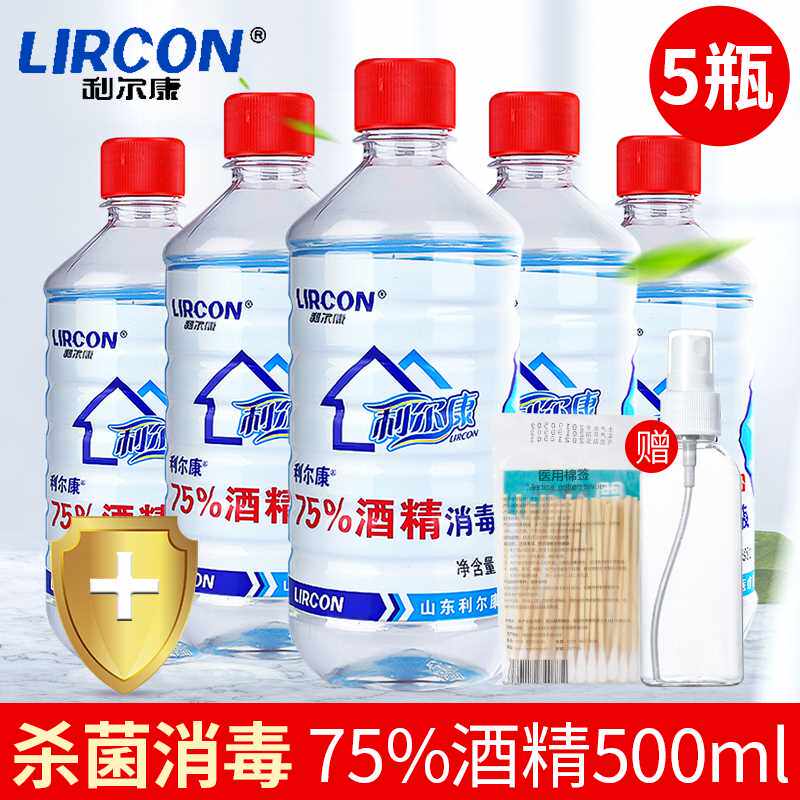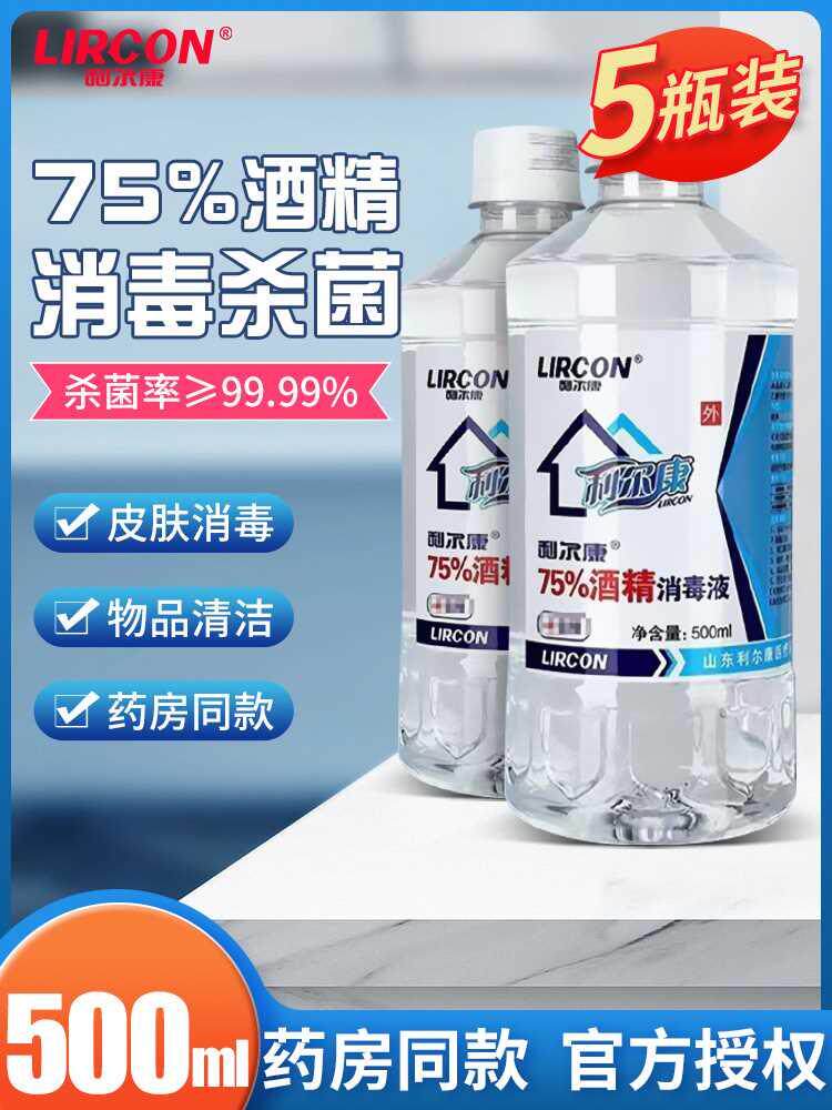 利尔康75%酒精消毒液500ml*5瓶家用皮肤伤口器械物品杀菌75度乙醇