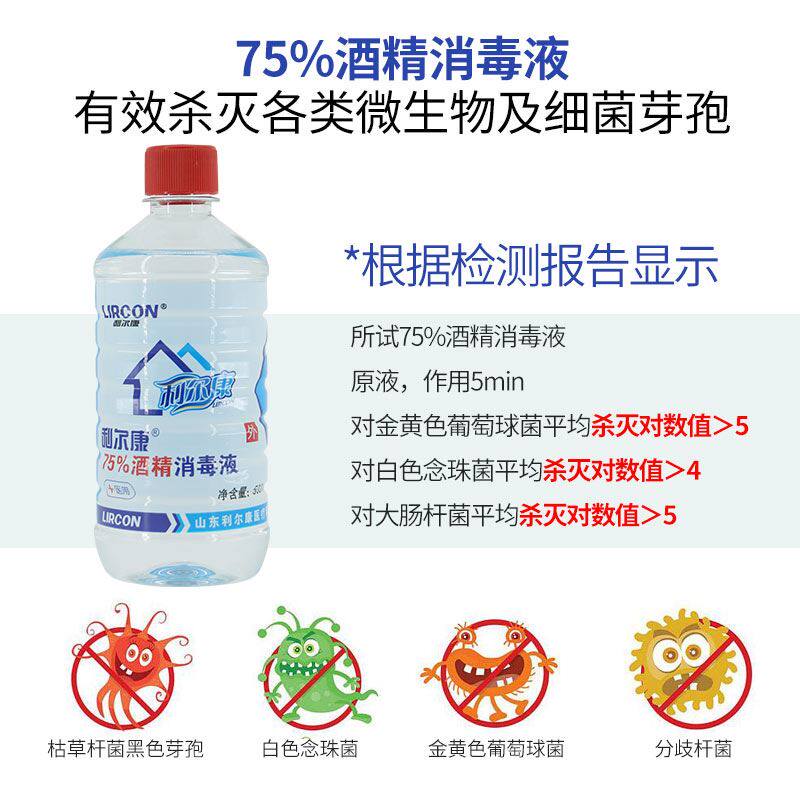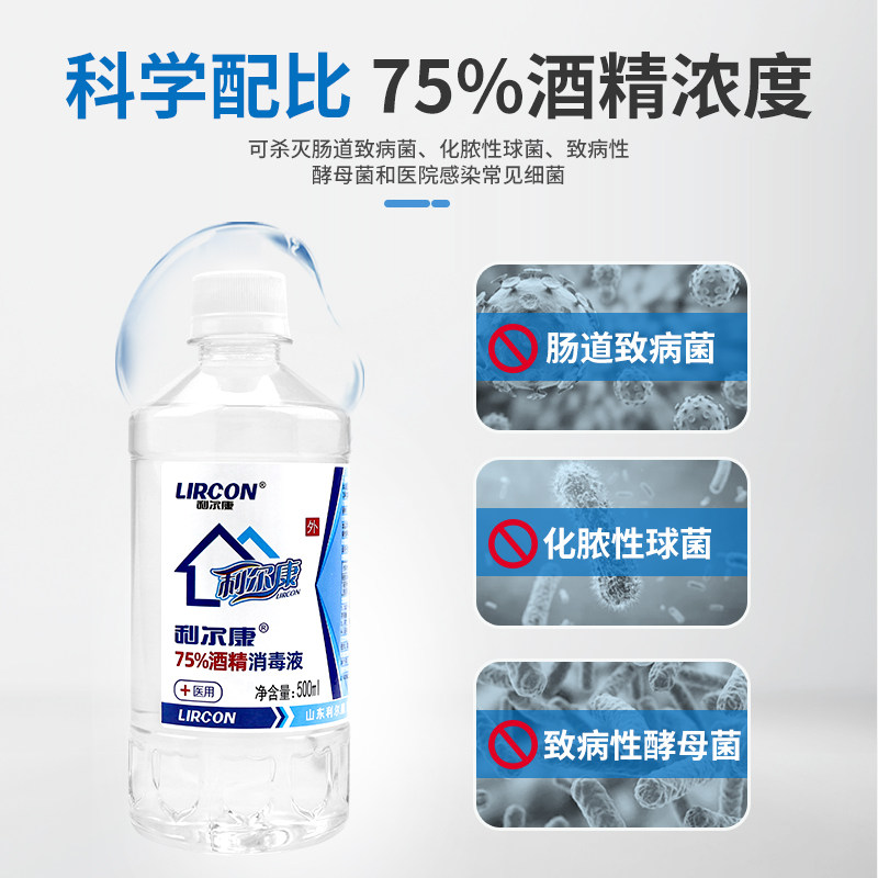 利尔康75%酒精消毒液500ml皮肤伤口杀菌75度乙醇家用物品清洁整箱