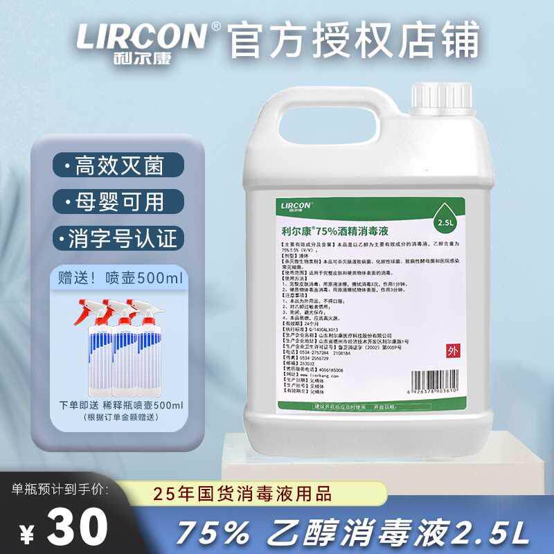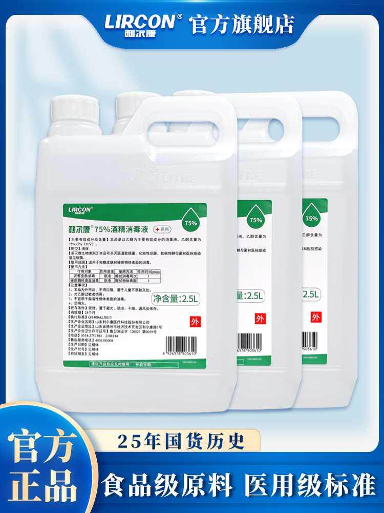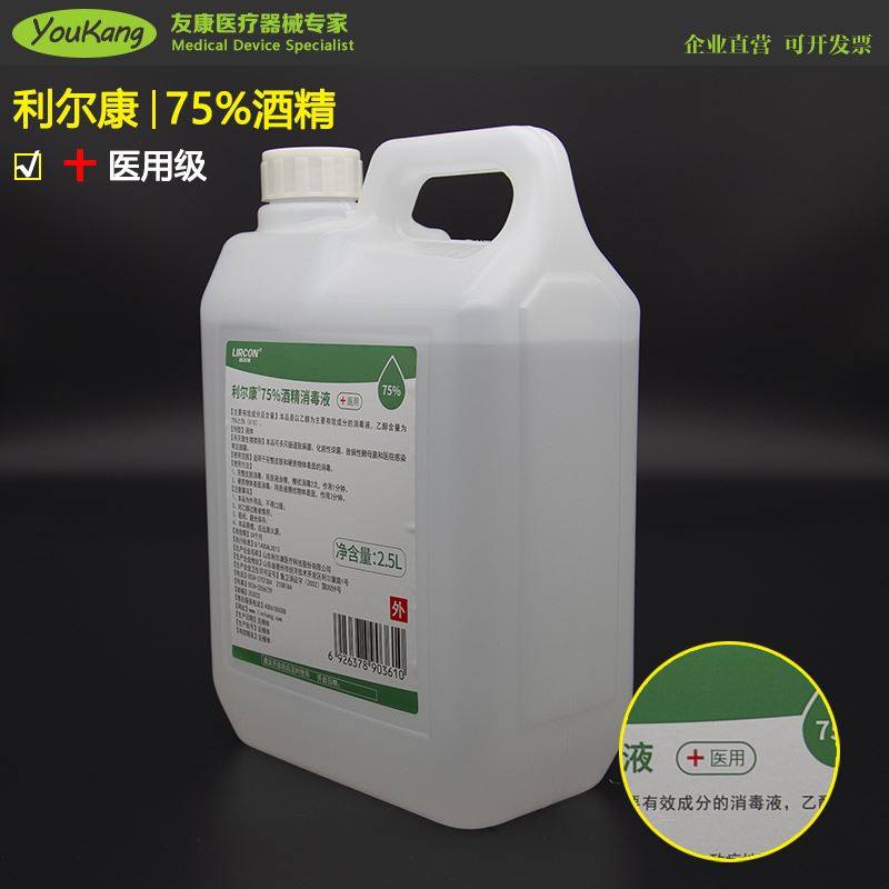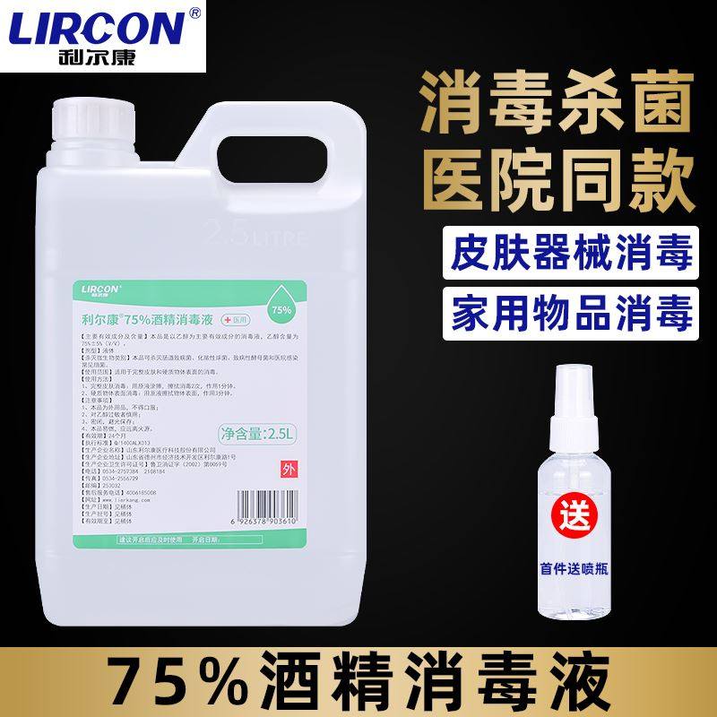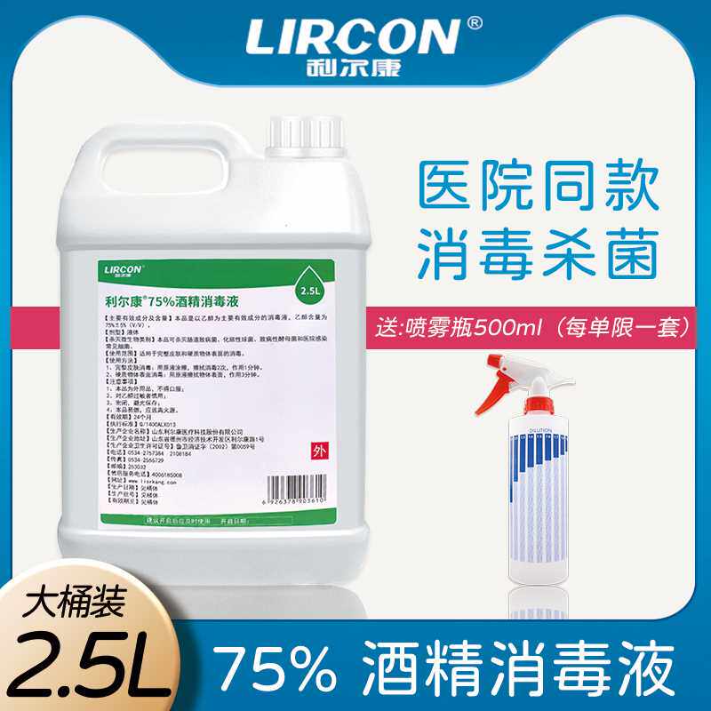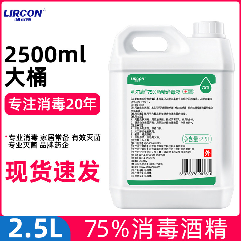 利尔康75度医用酒精大桶装2500ml乙醇消毒液防疫家用皮肤室内杀菌