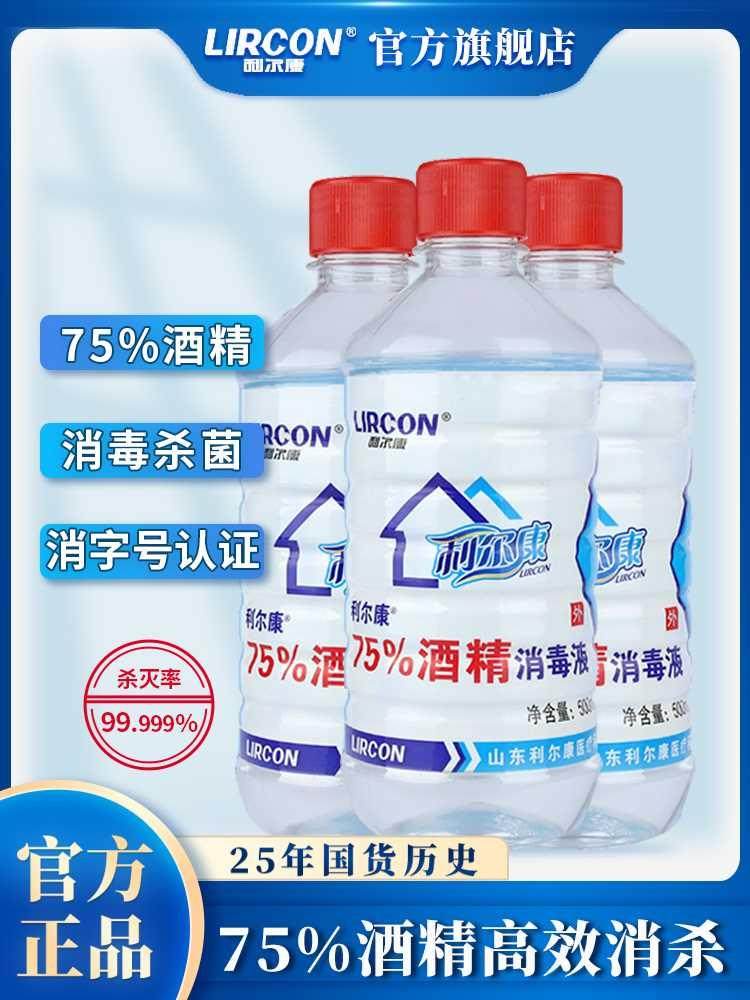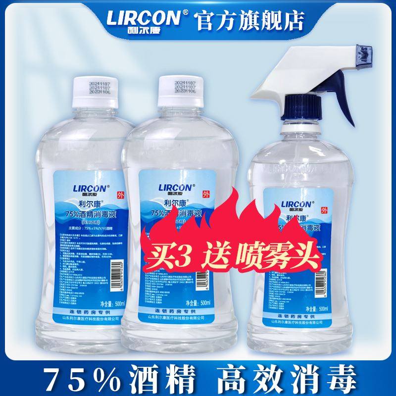 利尔康75%乙醇酒精消毒液500ml*3瓶皮肤物品家用杀菌防疫环境清洁