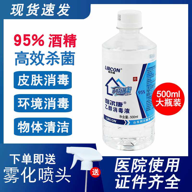 95%酒精消毒液500ml居家用利尔康95度乙醇杀菌拔火罐火锅化学实验