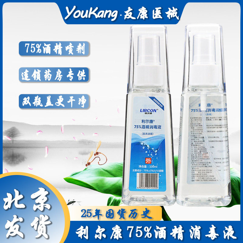 100ml利尔康75%酒精消毒液喷剂皮肤伤口清洁杀菌剂免洗食品级乙醇
