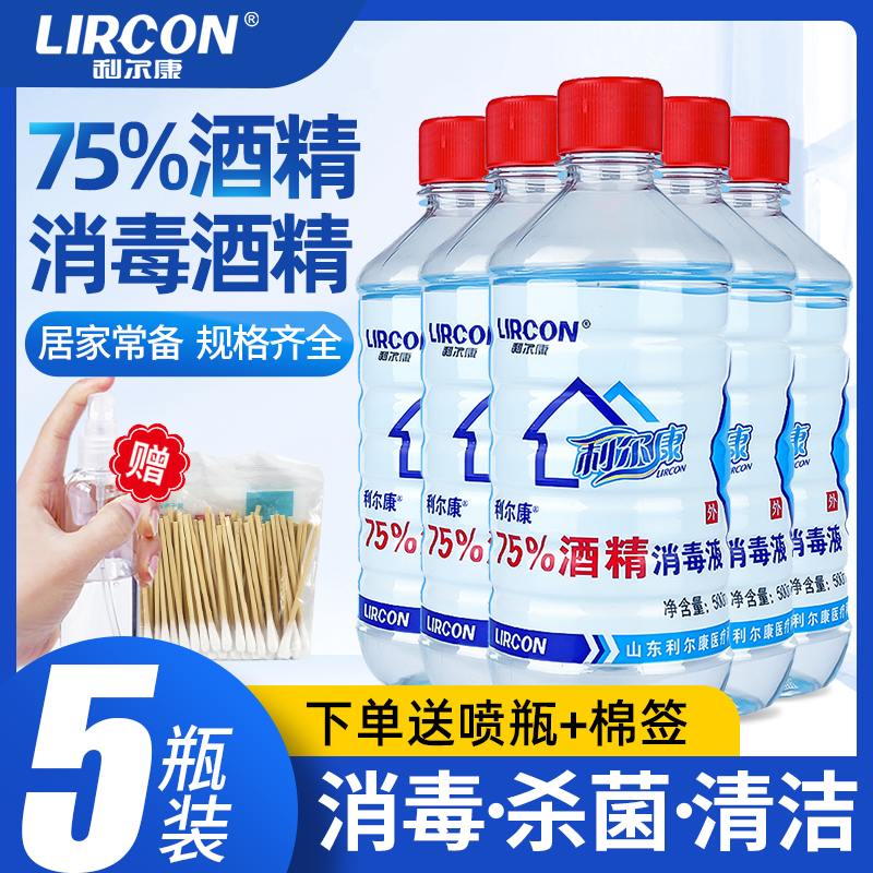 五瓶利尔康酒精75度乙醇消毒液免洗皮肤伤口清洁杀菌器械工具居家