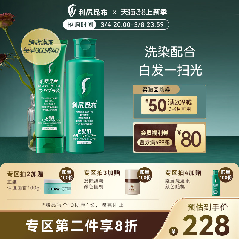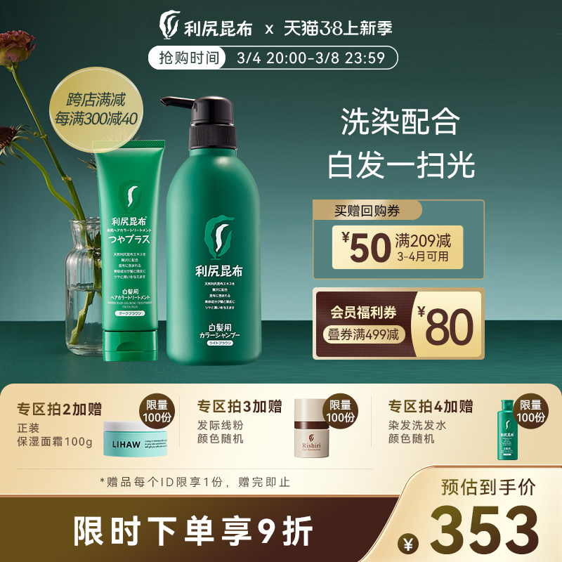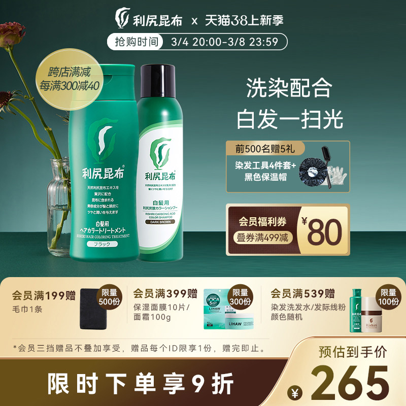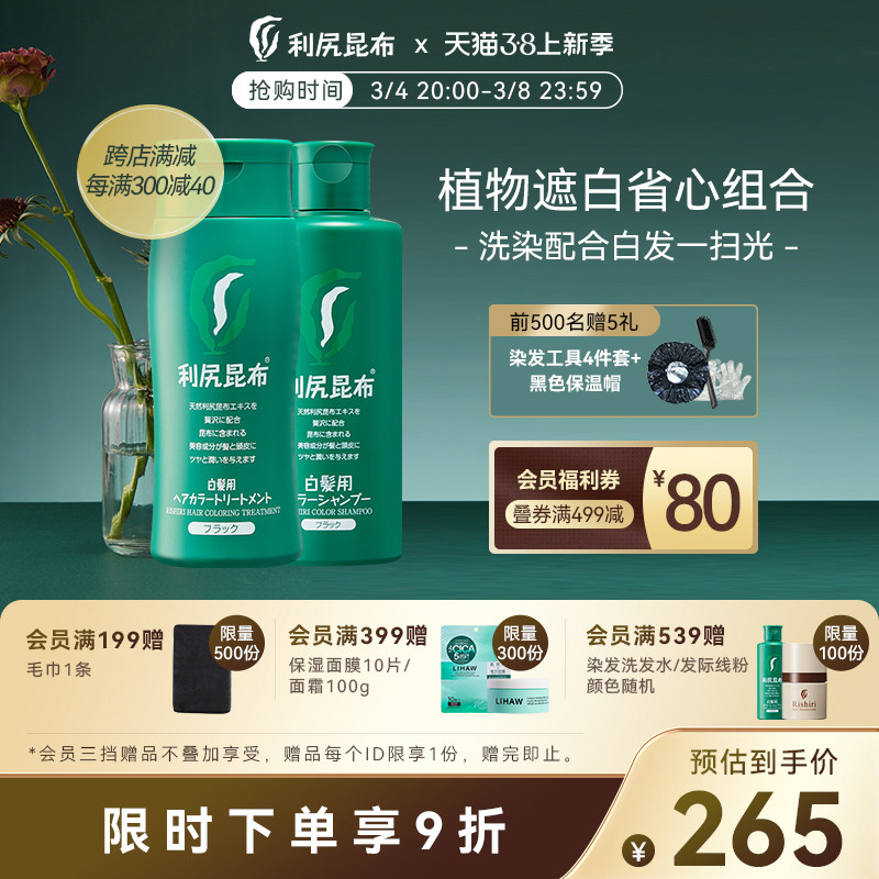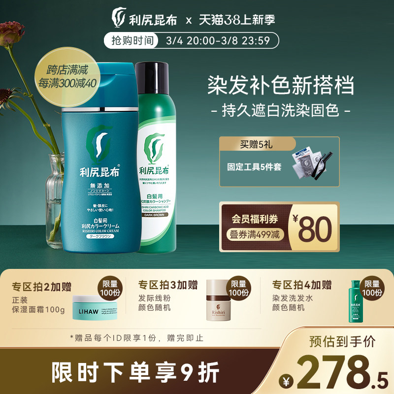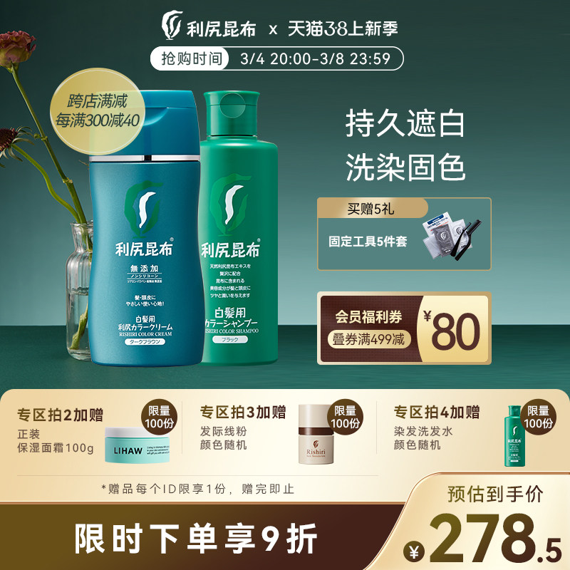 日本利尻昆布植物亮泽染发膏80g+染发洗发水500ml套装持久遮白发