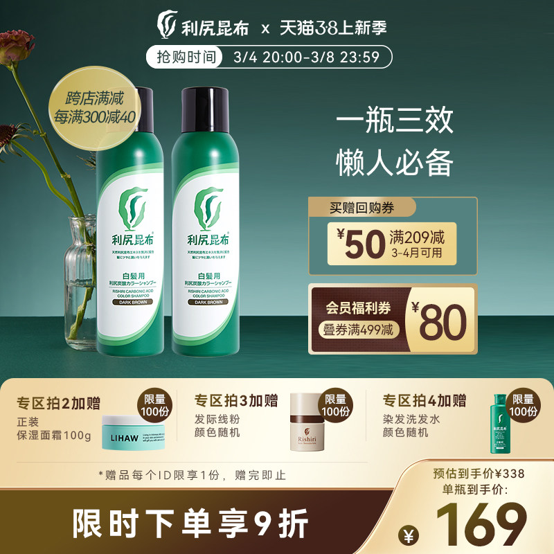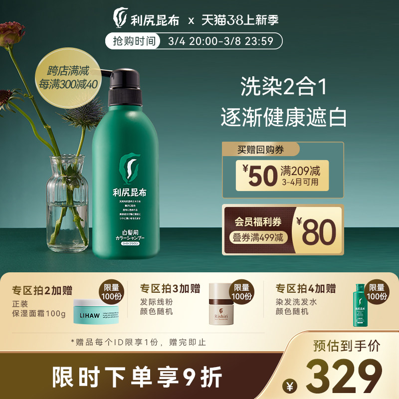 日本代购纯植物遮盖白发利尻昆布染发2合1洗发水无添加染发膏现货