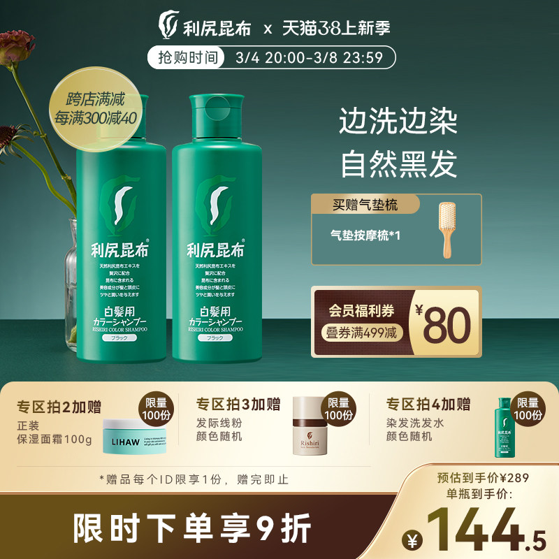 日本利尻昆布自然黑发补色固色染发洗发水2瓶植物无硅油洗染一体