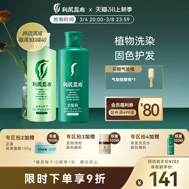 日本进口利尻昆布无硅油植物染发洗发水+染发专用护发素洗护套装