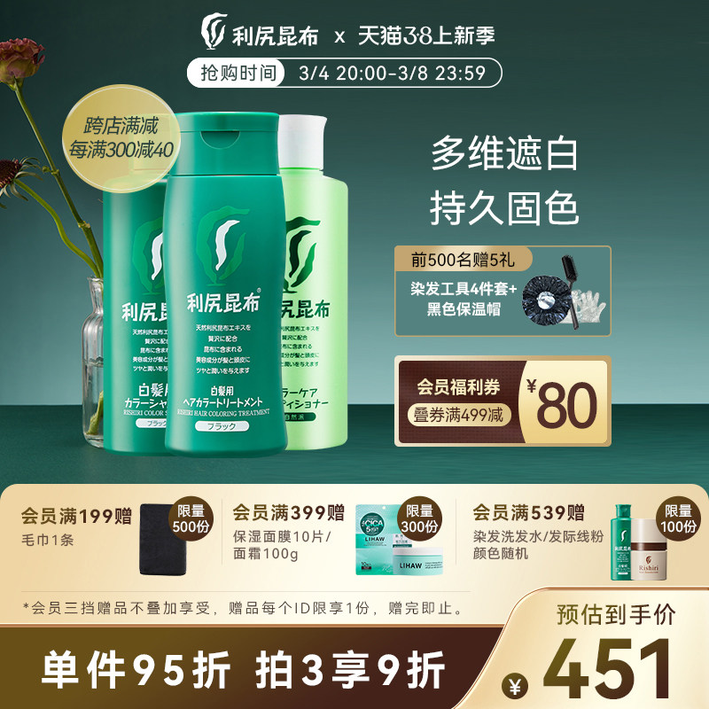 日本进口利尻昆布染发剂洗发水护发素三件套装纯植物遮白发男女用