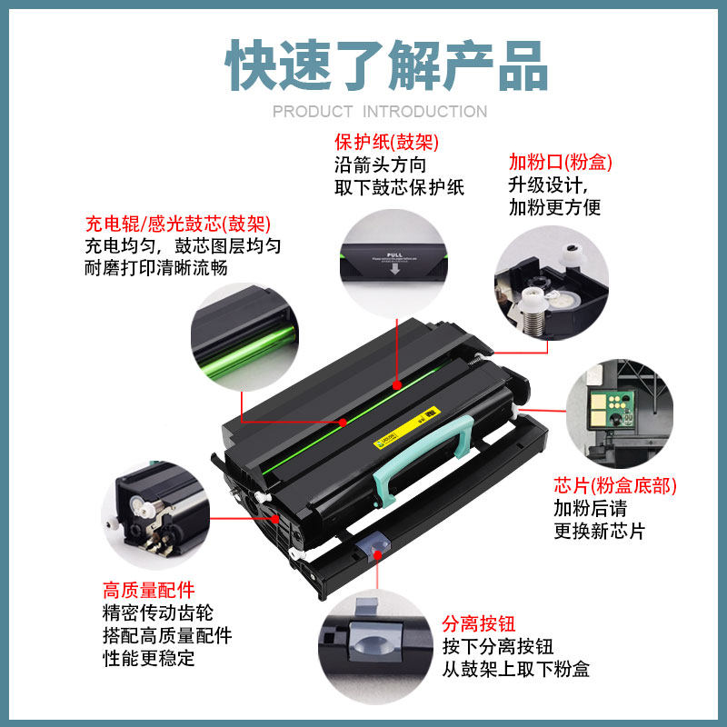 变彩 适用于利盟E260 X360 X364 464 戴尔2330 DELL2230 联想LD3900打印机感光鼓 X264N鼓芯LEXMARK E260鼓芯