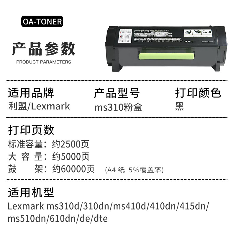适用利盟ms310粉盒ms312k打印机粉盒ms312dn硒鼓ms315dn ms410d m