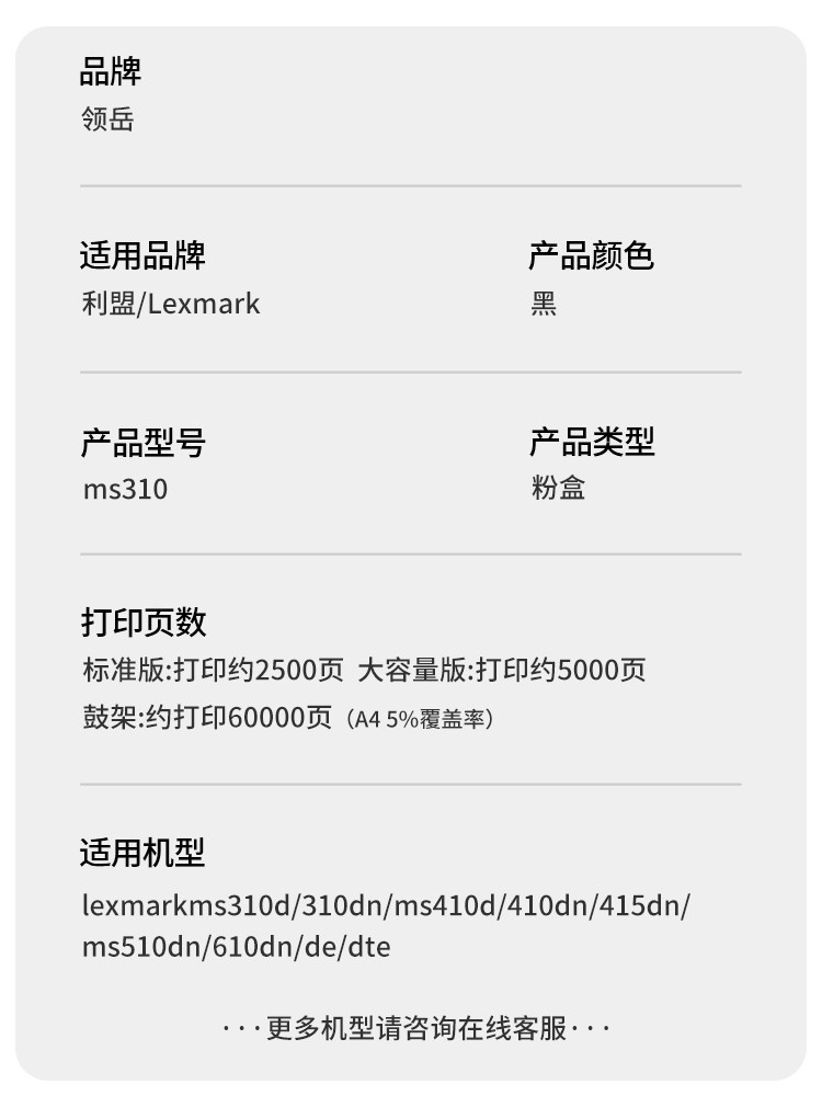 适用利盟ms310粉盒fMS310DN硒鼓ms312dn打印机硒鼓ms315dn ms410d