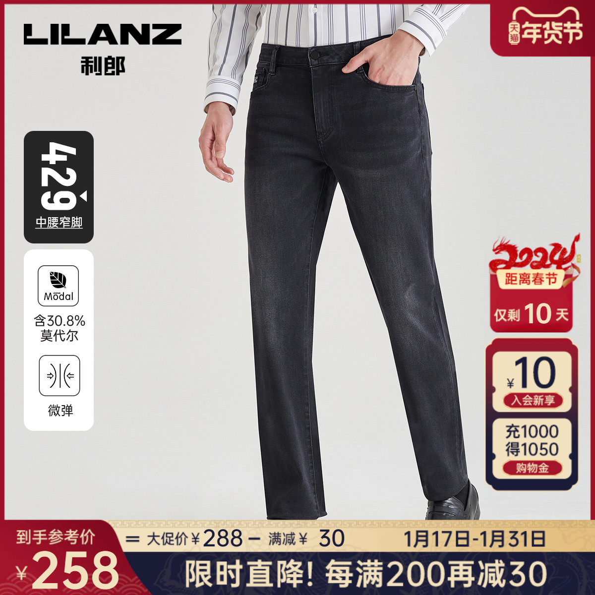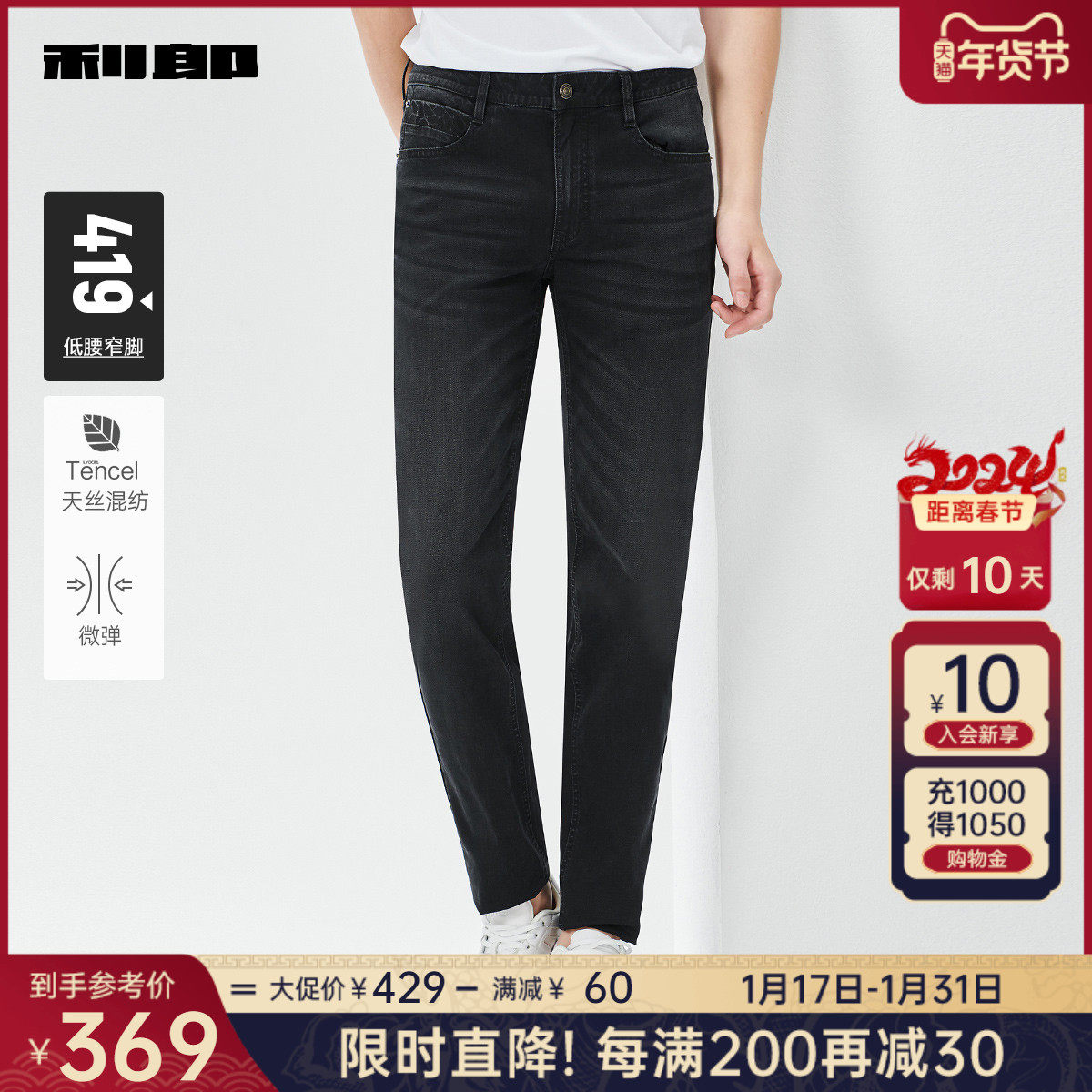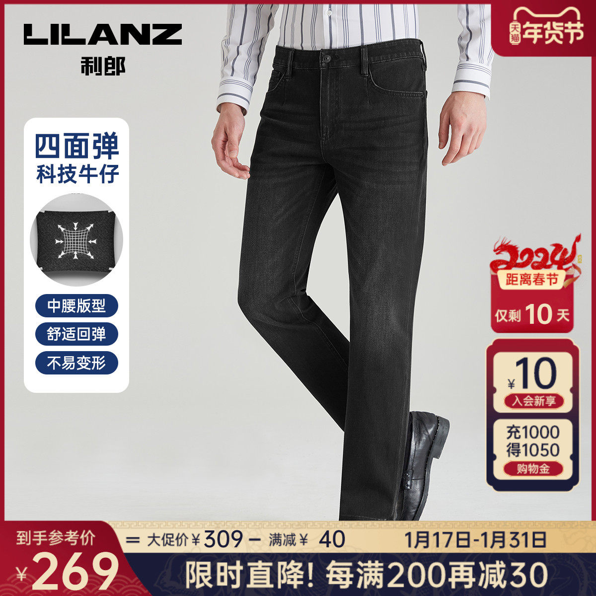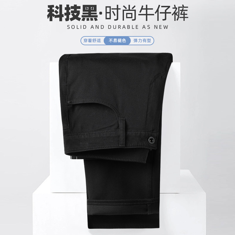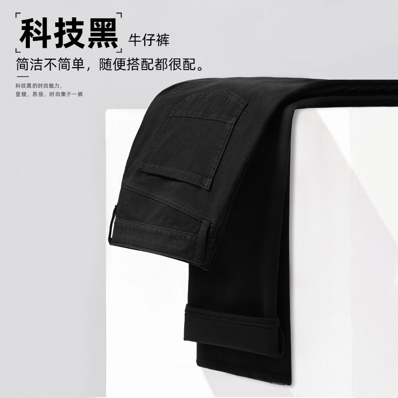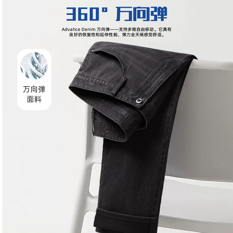 【科技黑+万向弹面料】利郎男士牛仔裤春季弹力中腰休闲百搭裤子