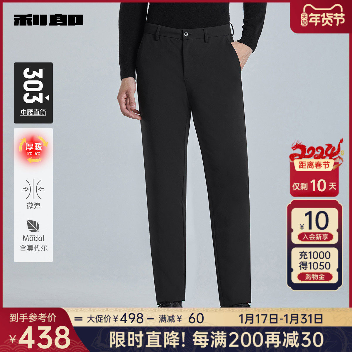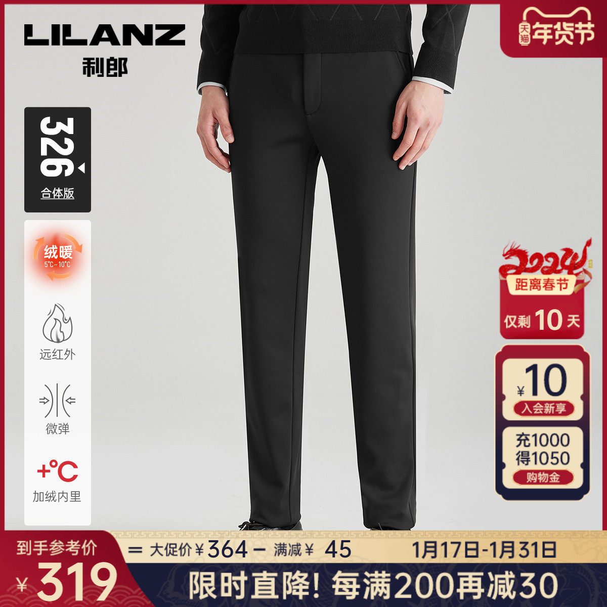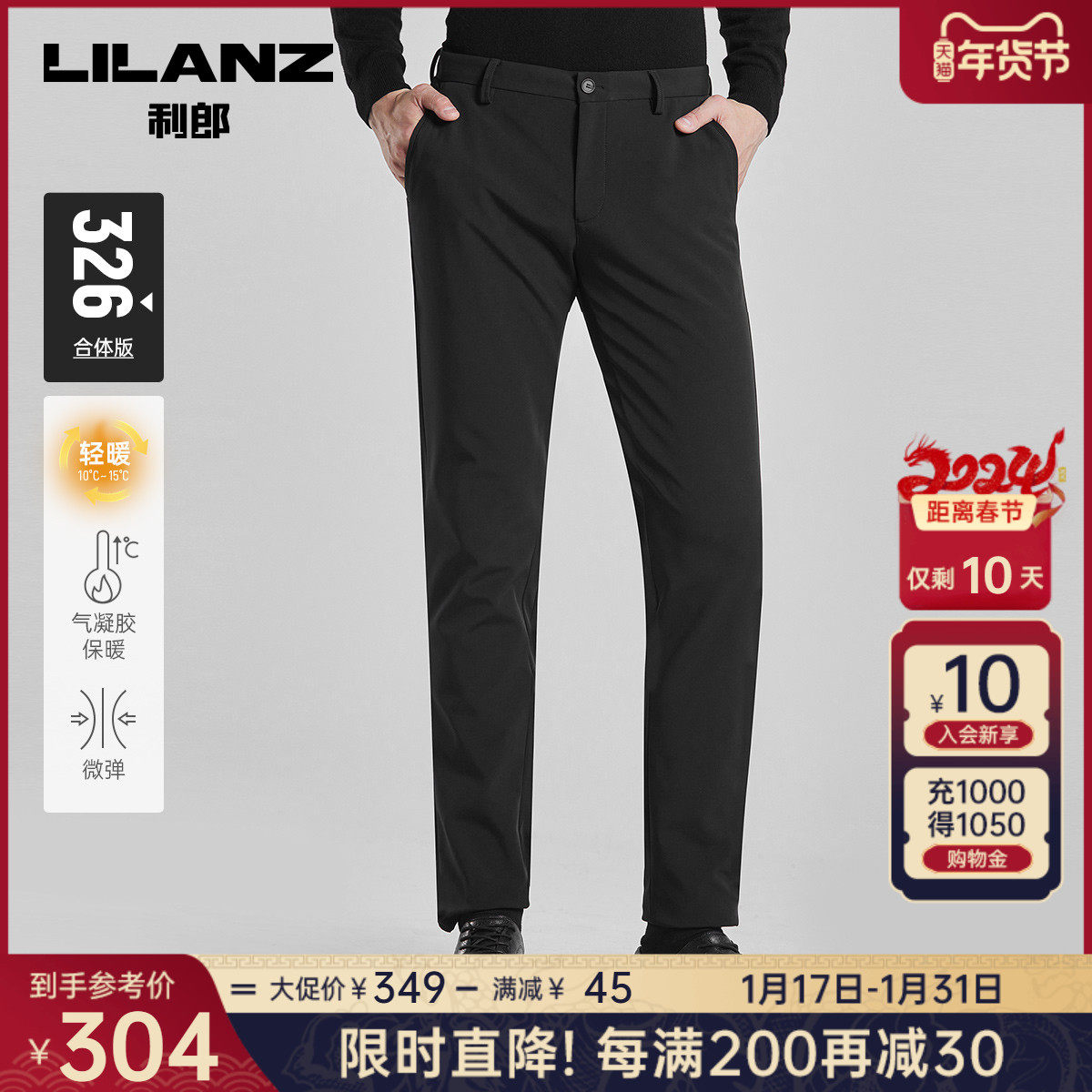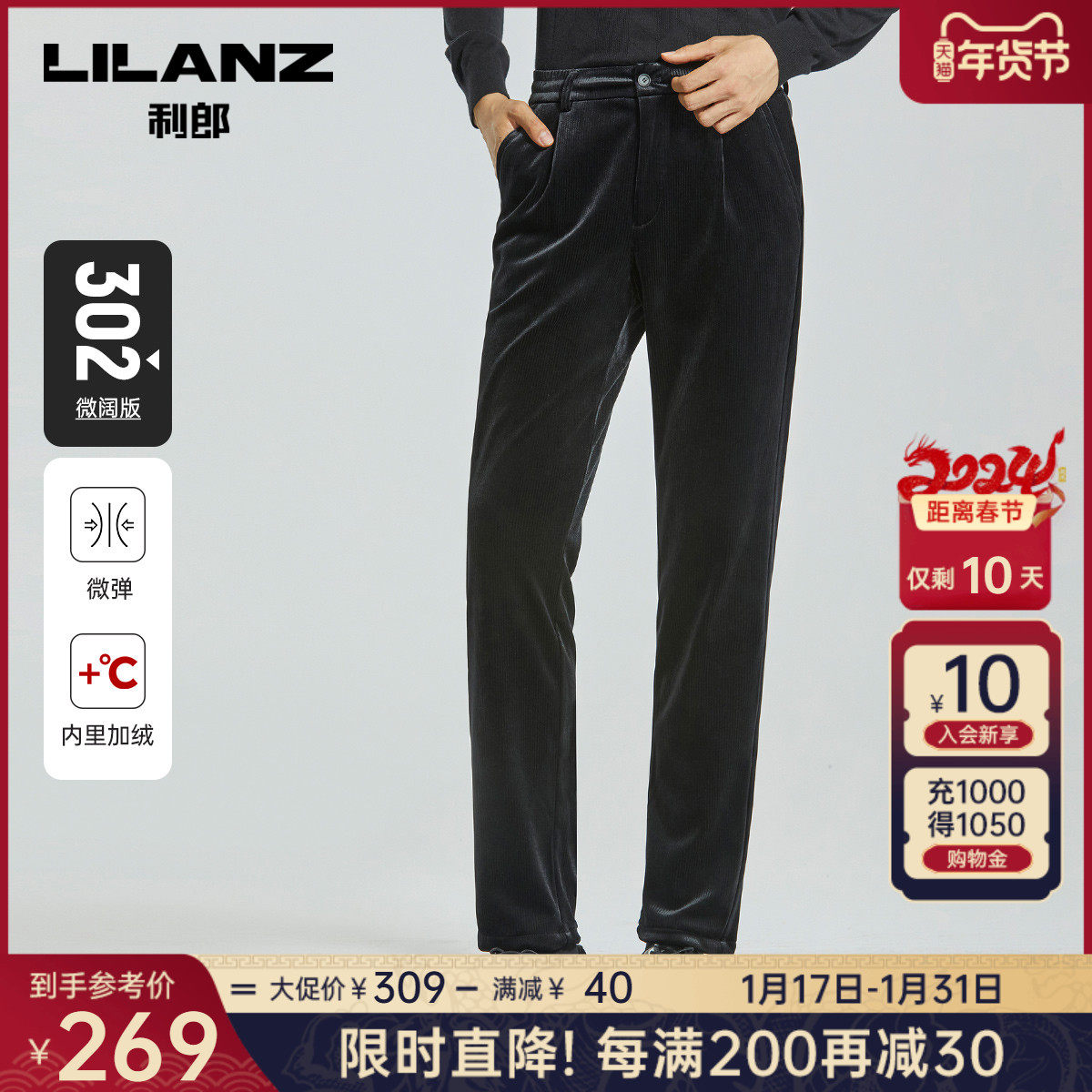 【加绒保暖裤】利郎男士休闲裤2023冬季商务西裤弹力直筒长裤子男