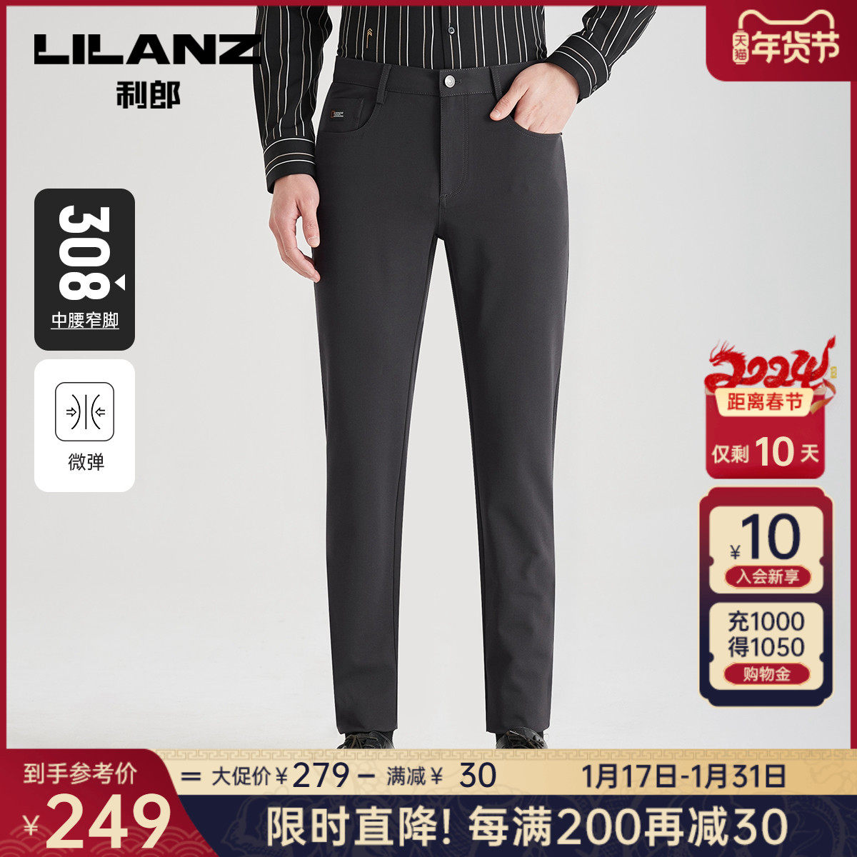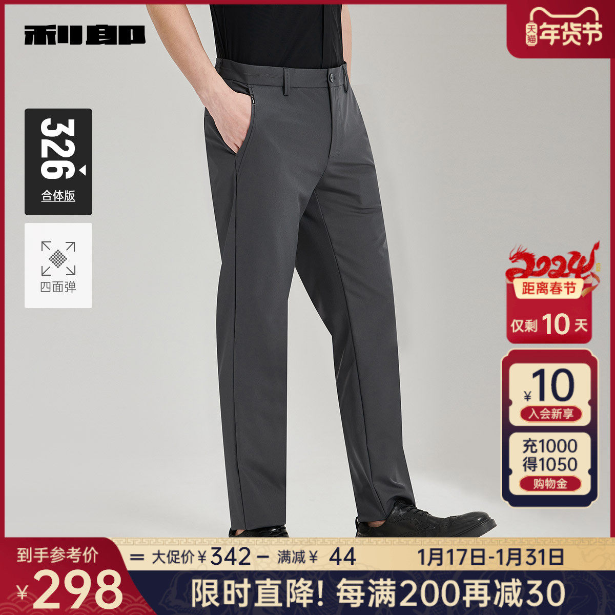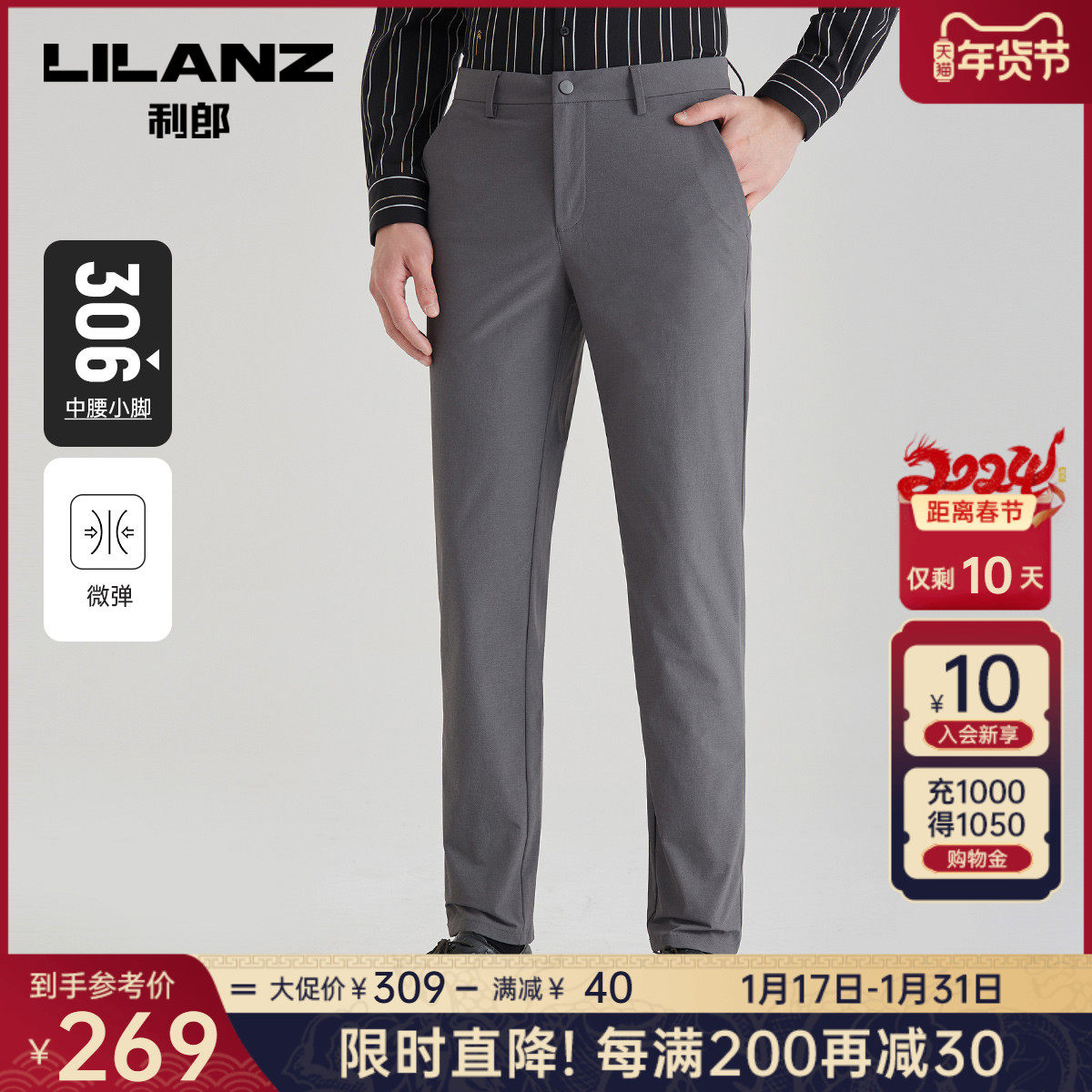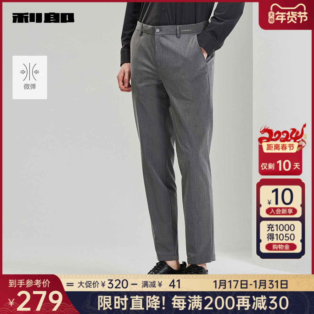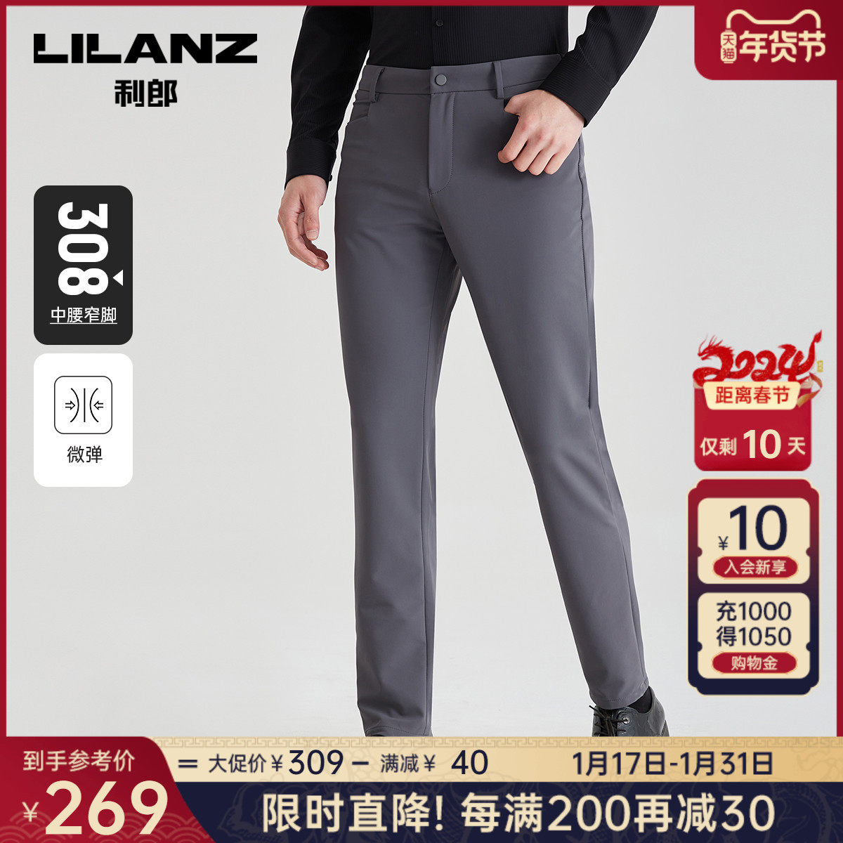 【抗菌】利郎官方商务休闲裤男士2023秋季新款深灰色弹力男士裤子