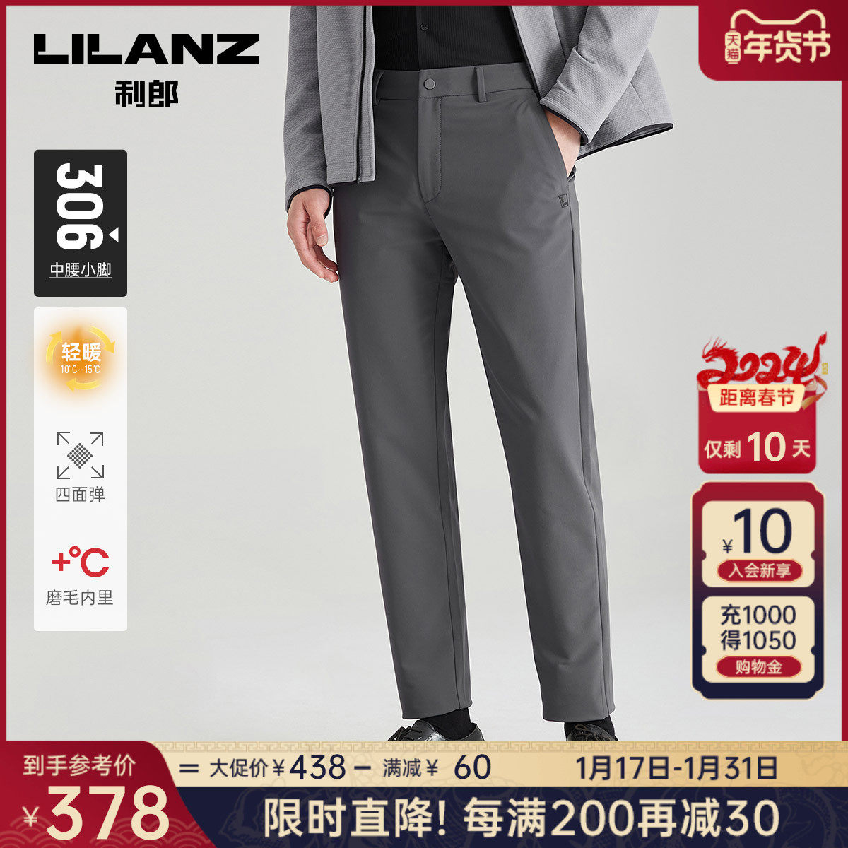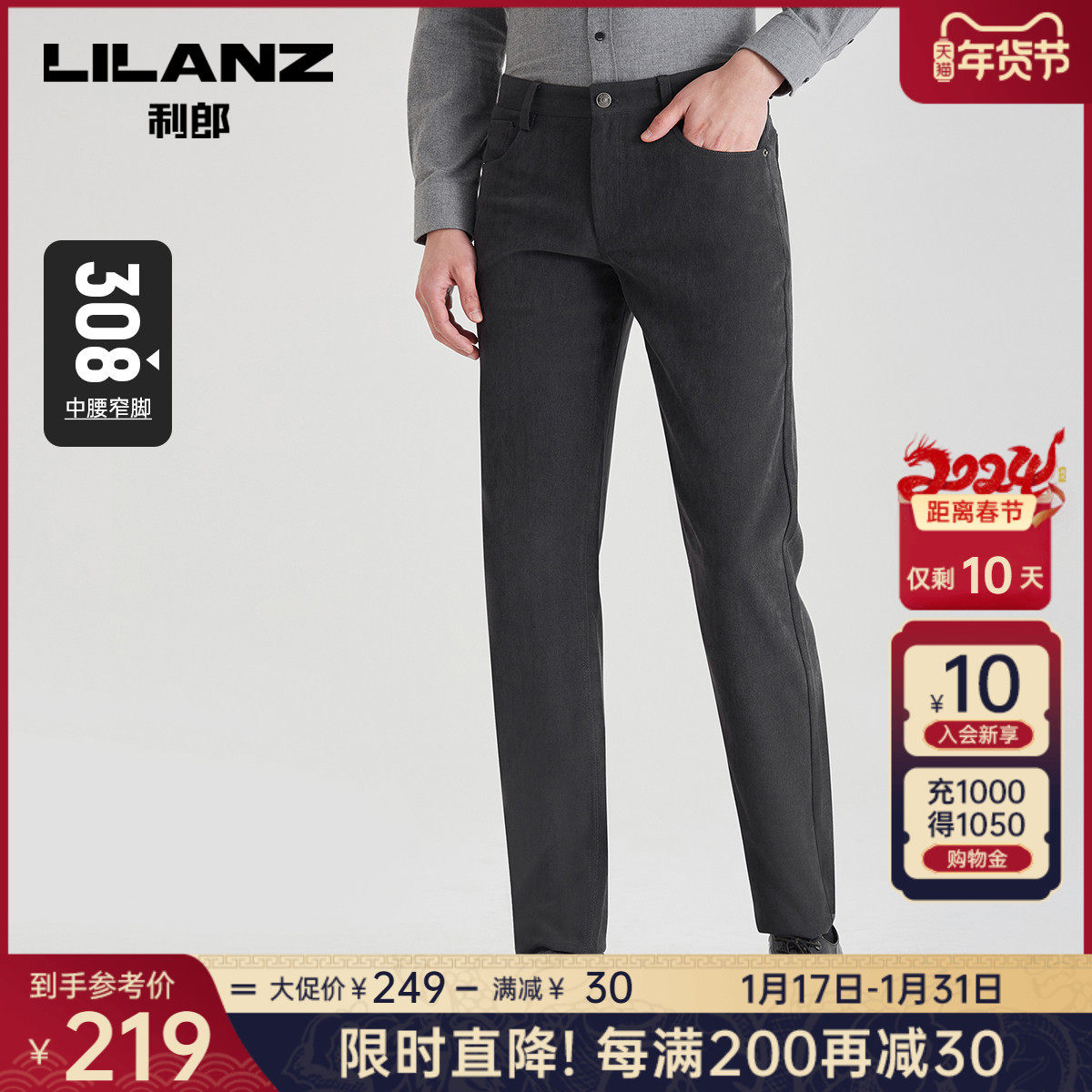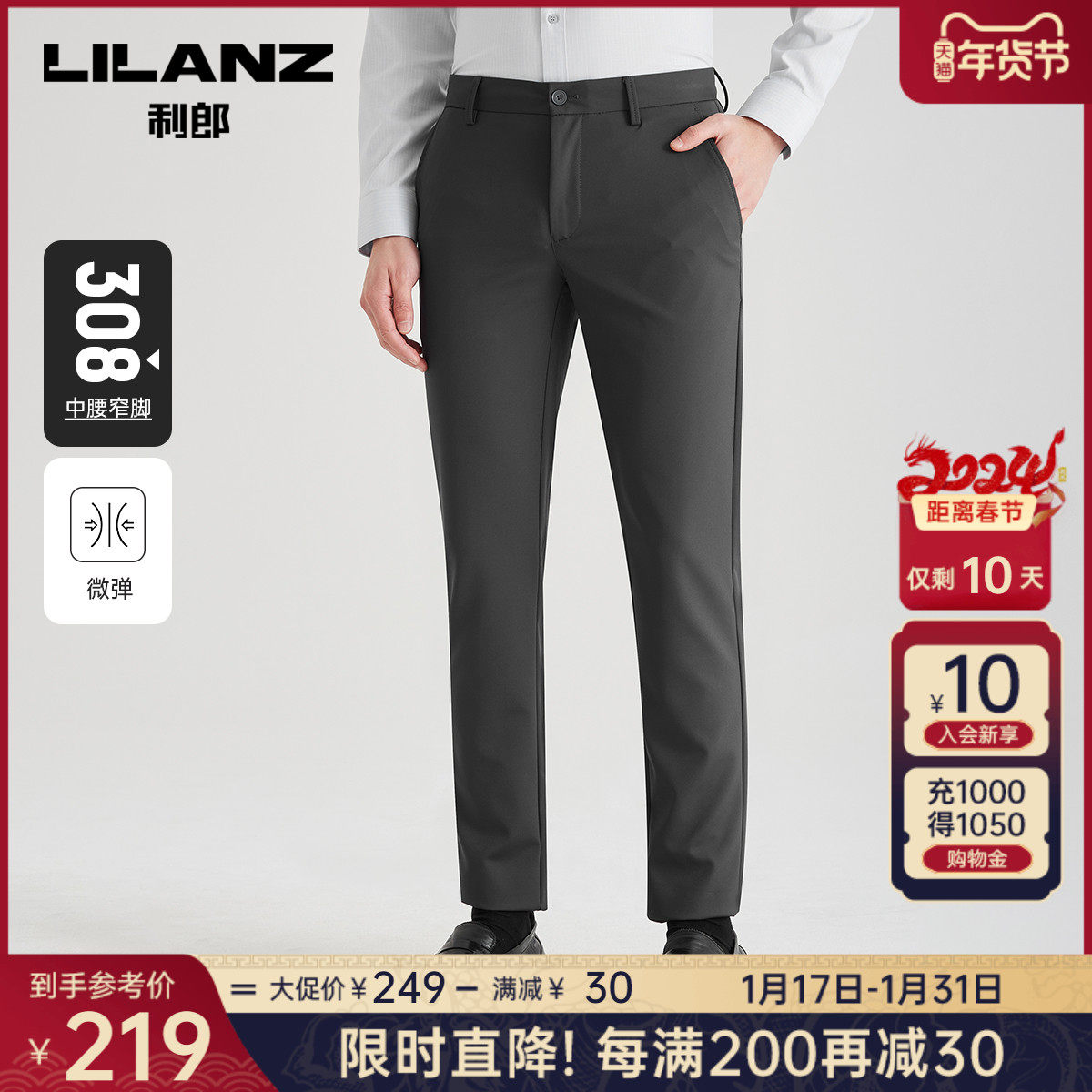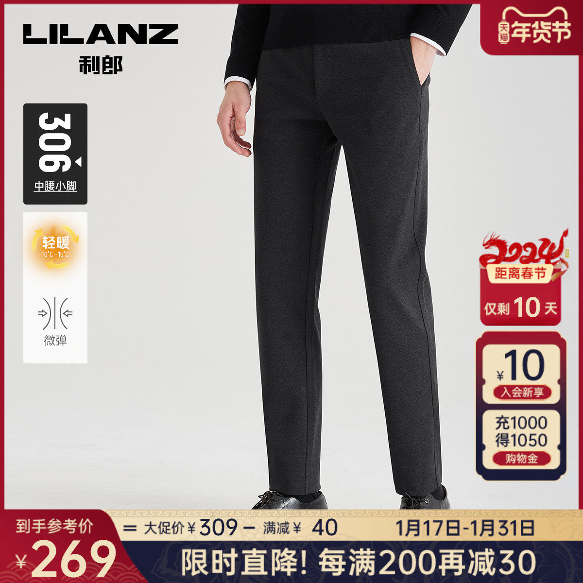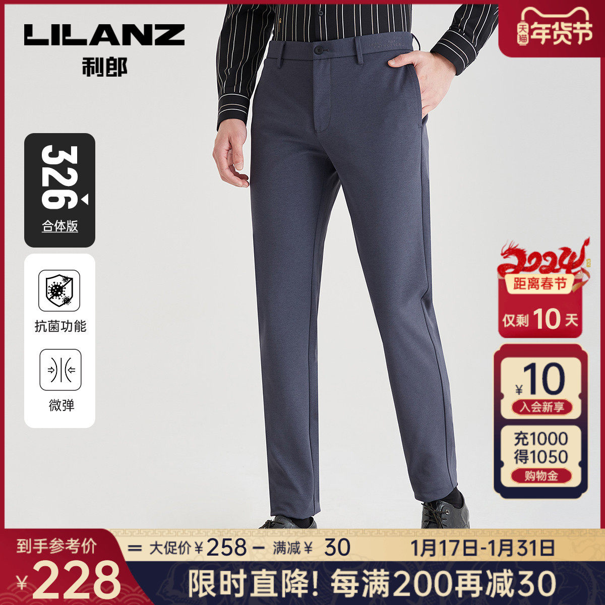 【抗菌】利郎官方商务休闲裤男士2023秋季新款深灰色弹力男士裤子