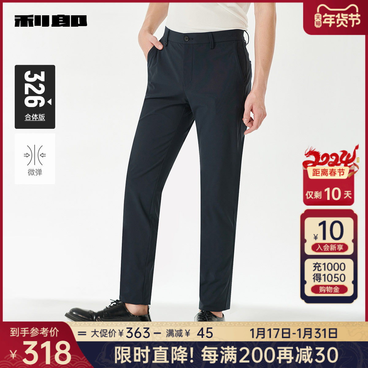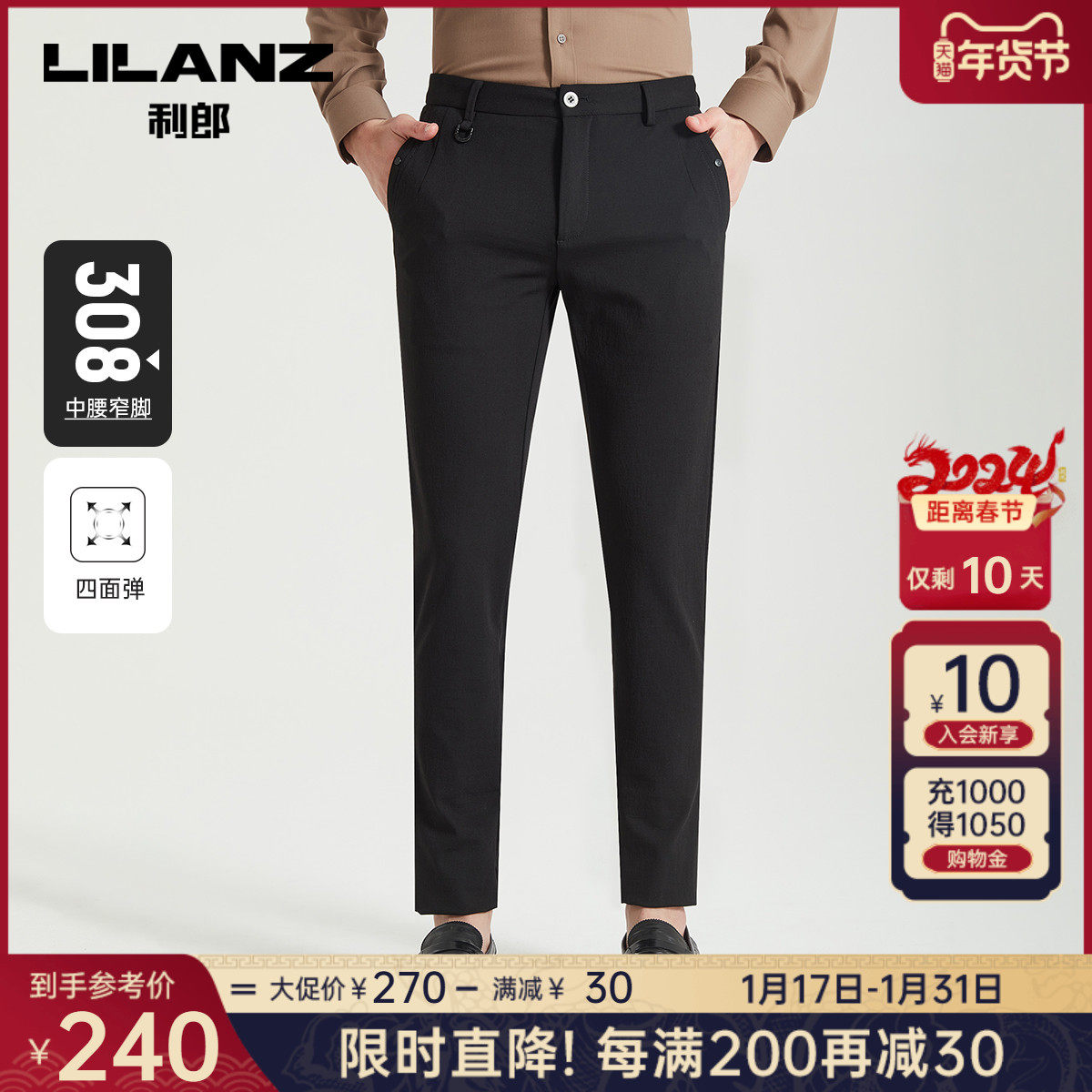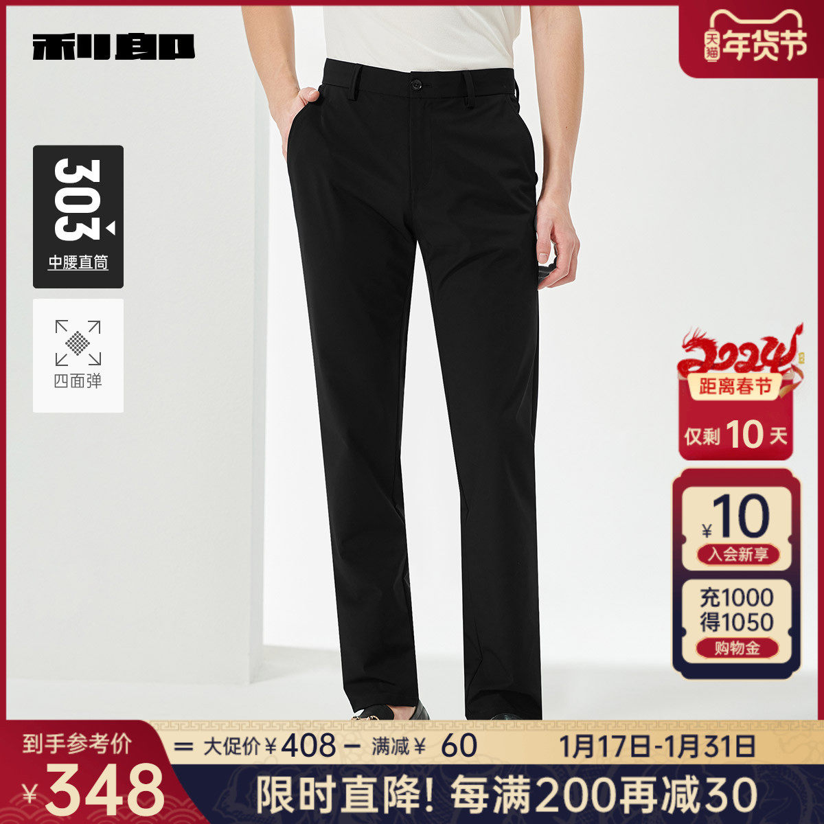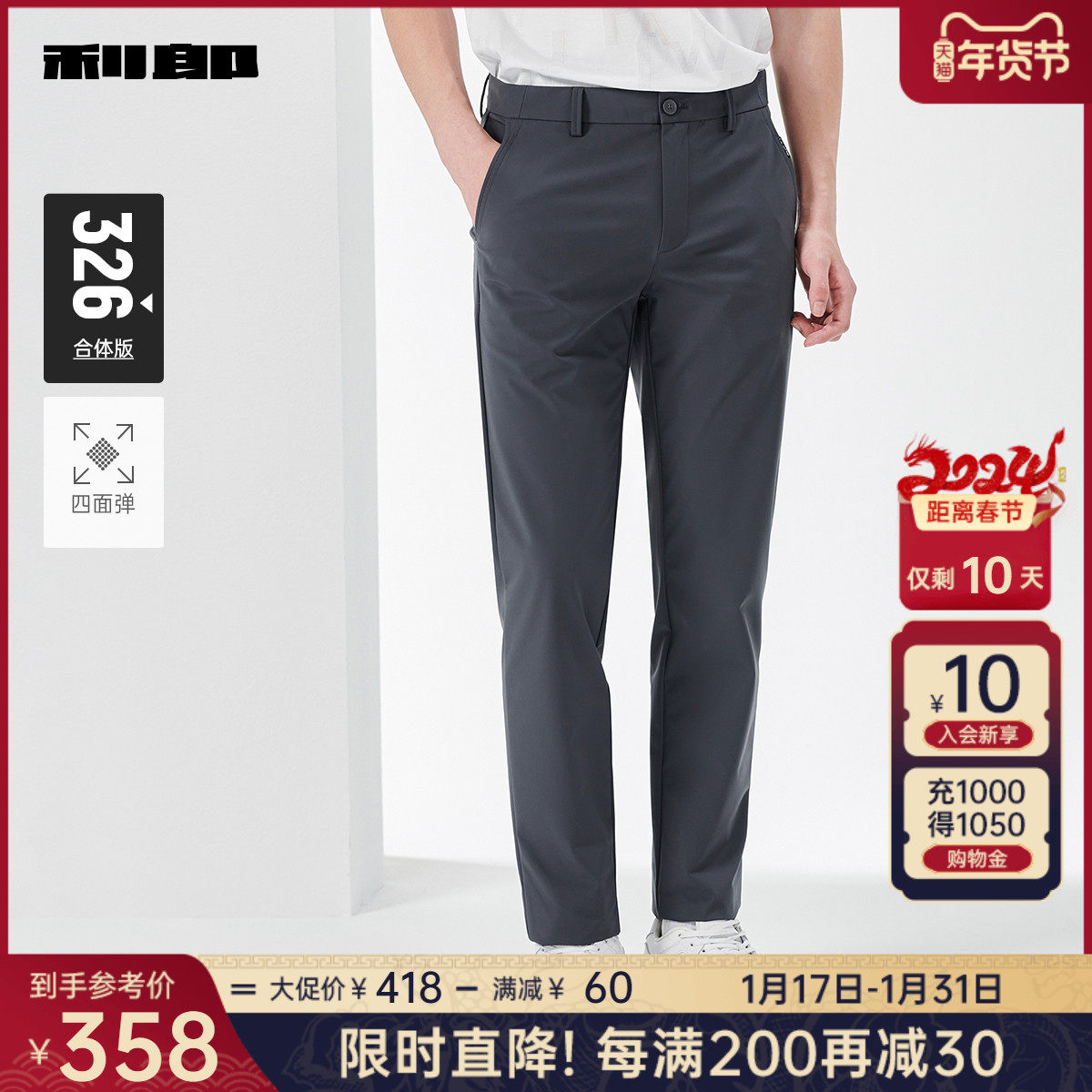 【四面弹力】利郎青年商务休闲裤2024春季男士西裤抗皱透气长裤子