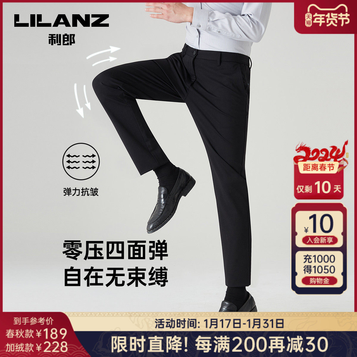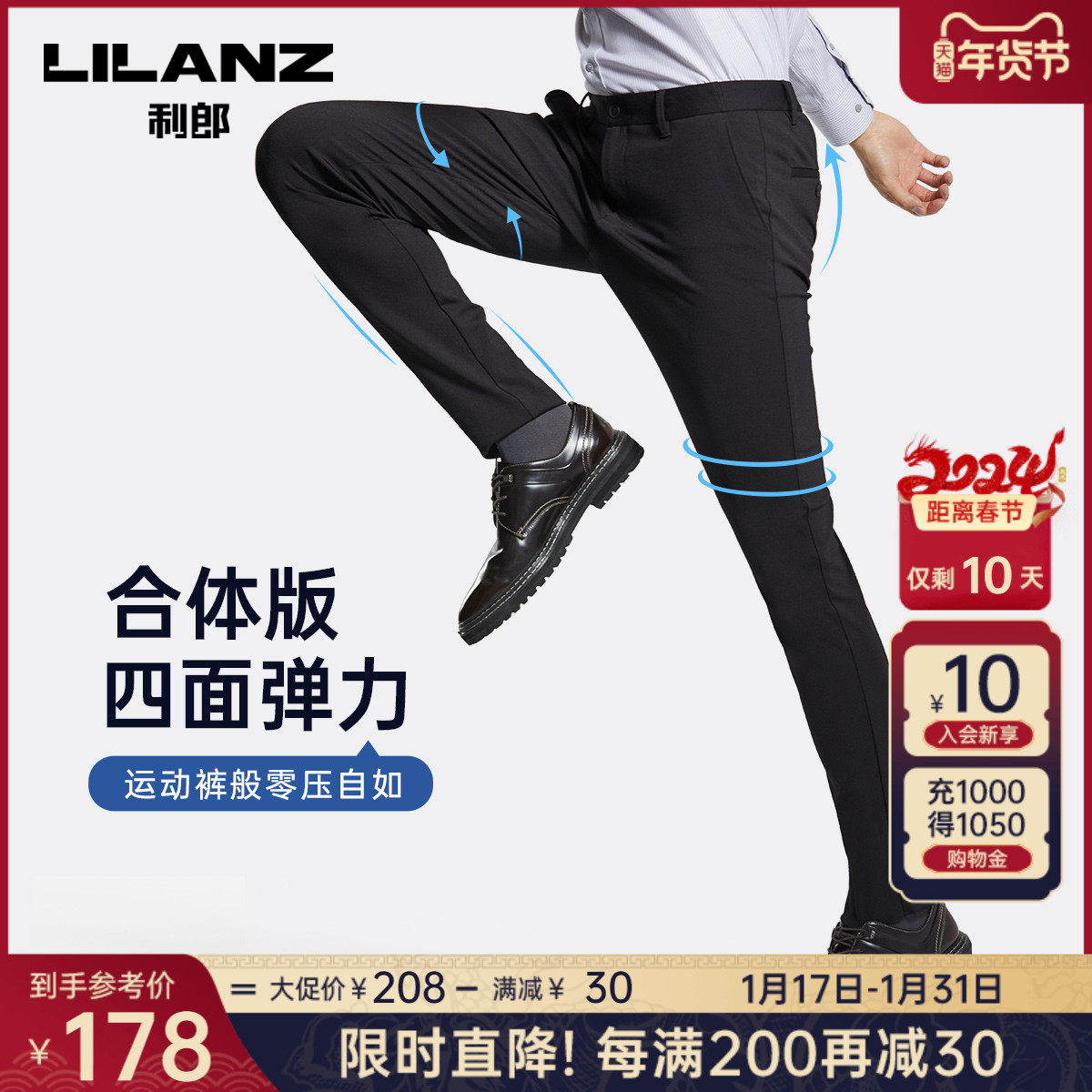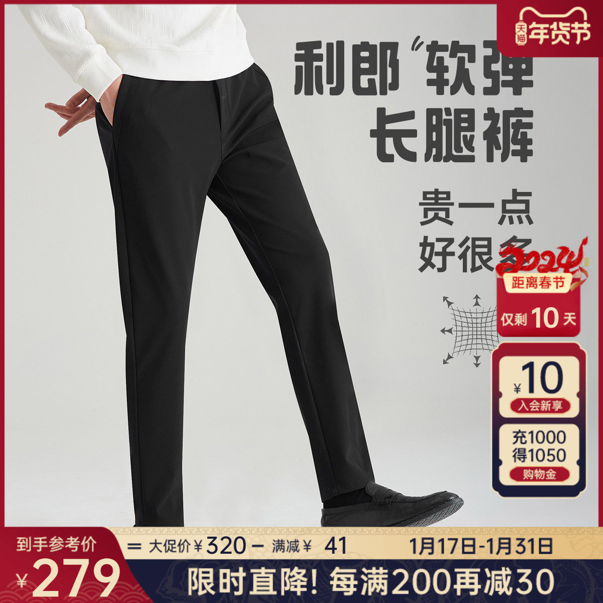 【四面弹力】利郎青年商务休闲裤2024春季男士西裤抗皱透气长裤子