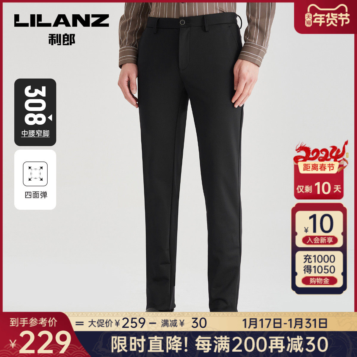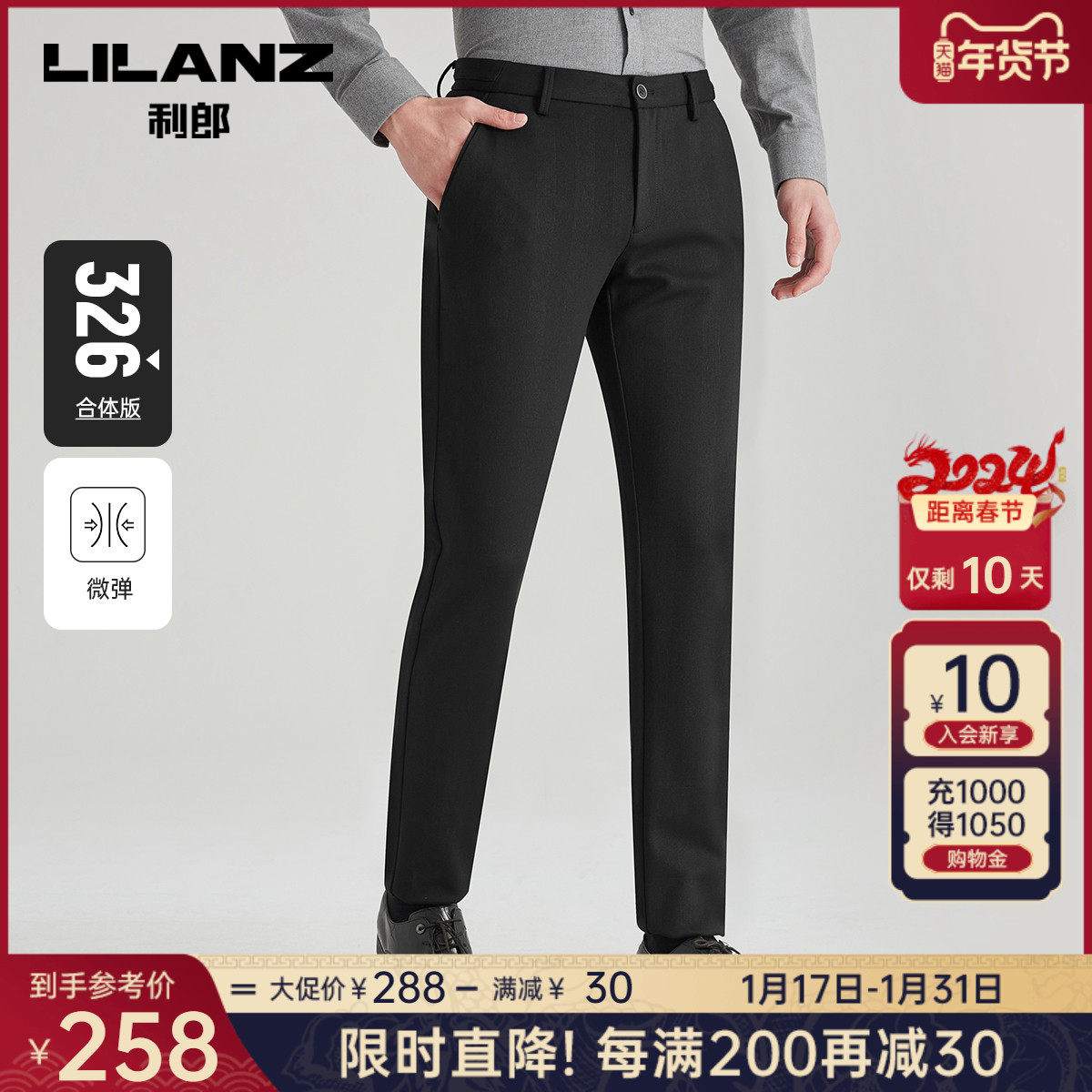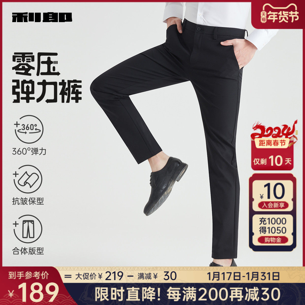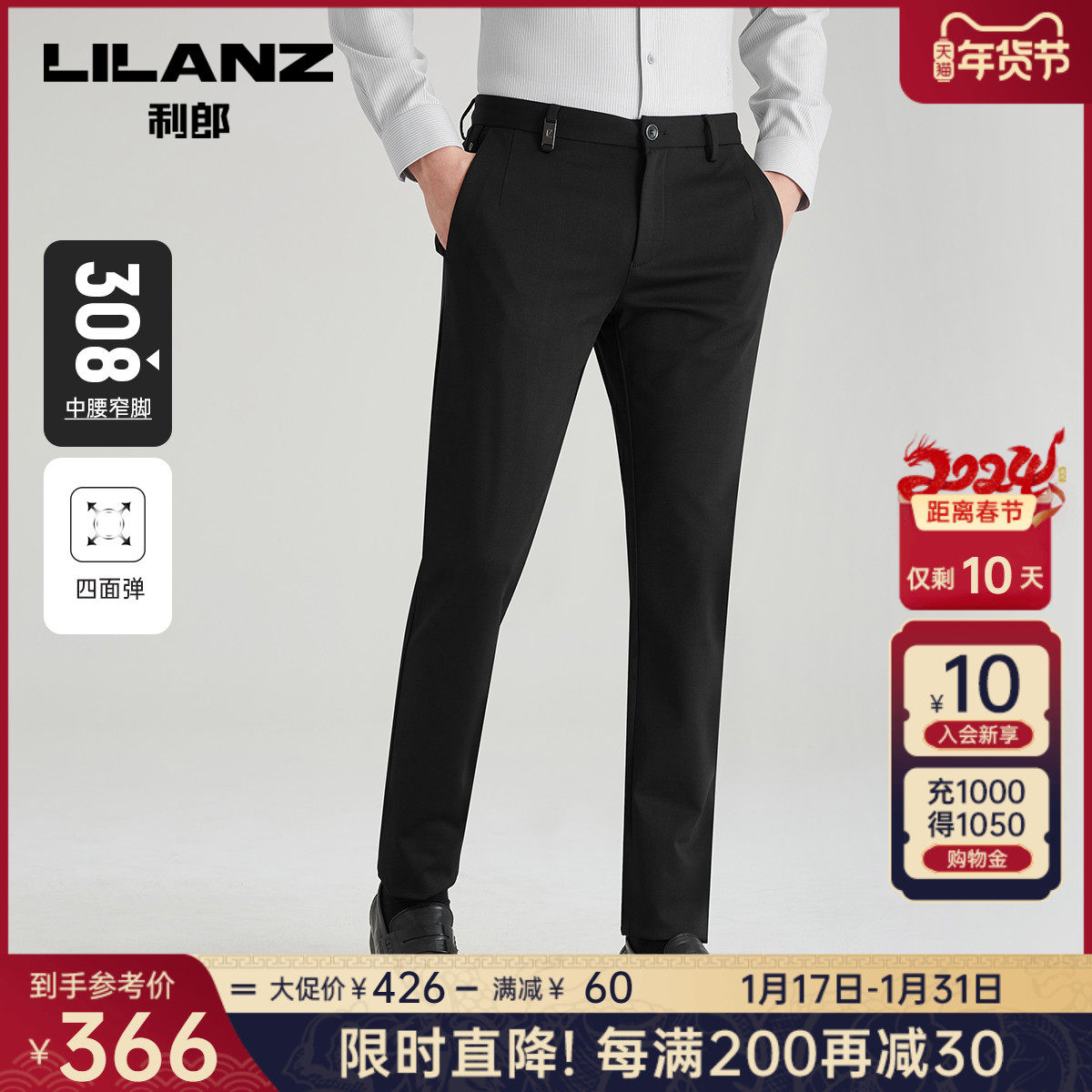【四面弹力】利郎青年商务休闲裤2024春季男士西裤抗皱透气长裤子