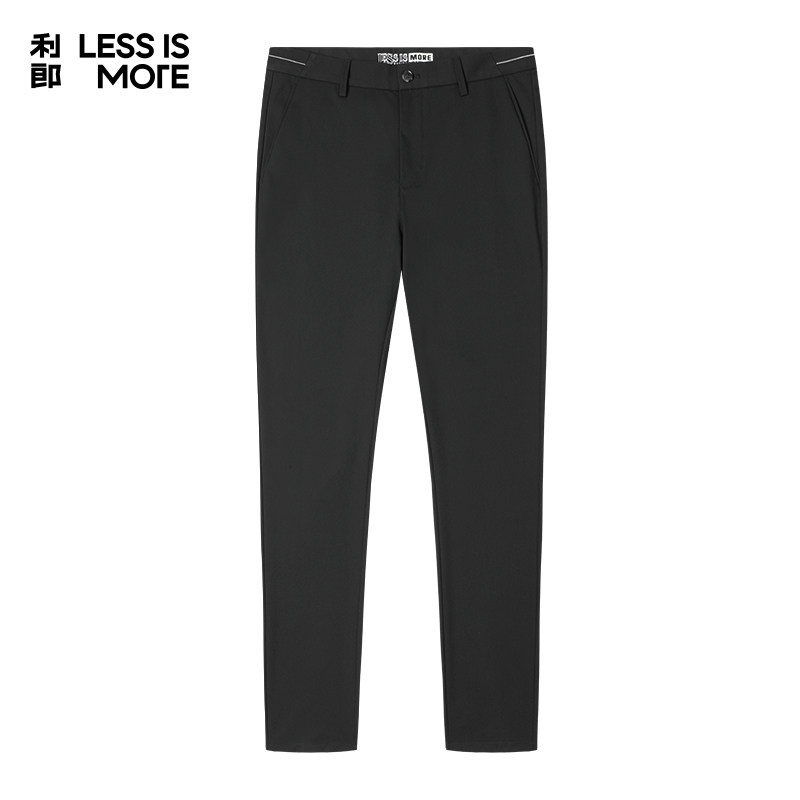 利郎官方 休闲裤男2023秋商务黑色织唛点缀中腰小脚男士九分裤