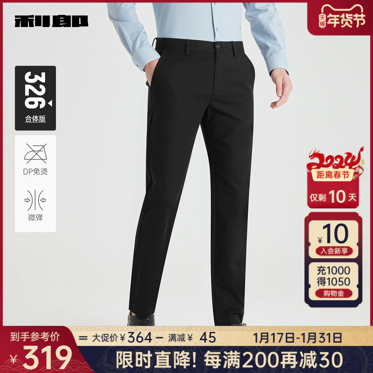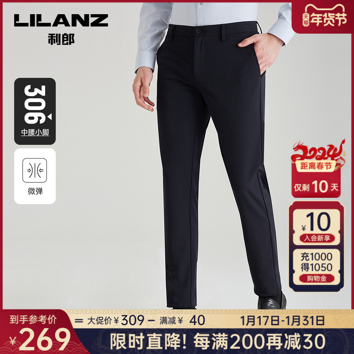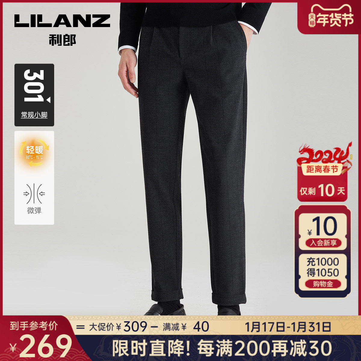 利郎休闲裤男中青年春秋冬款抗皱免烫商务休闲修身直筒正装西裤
