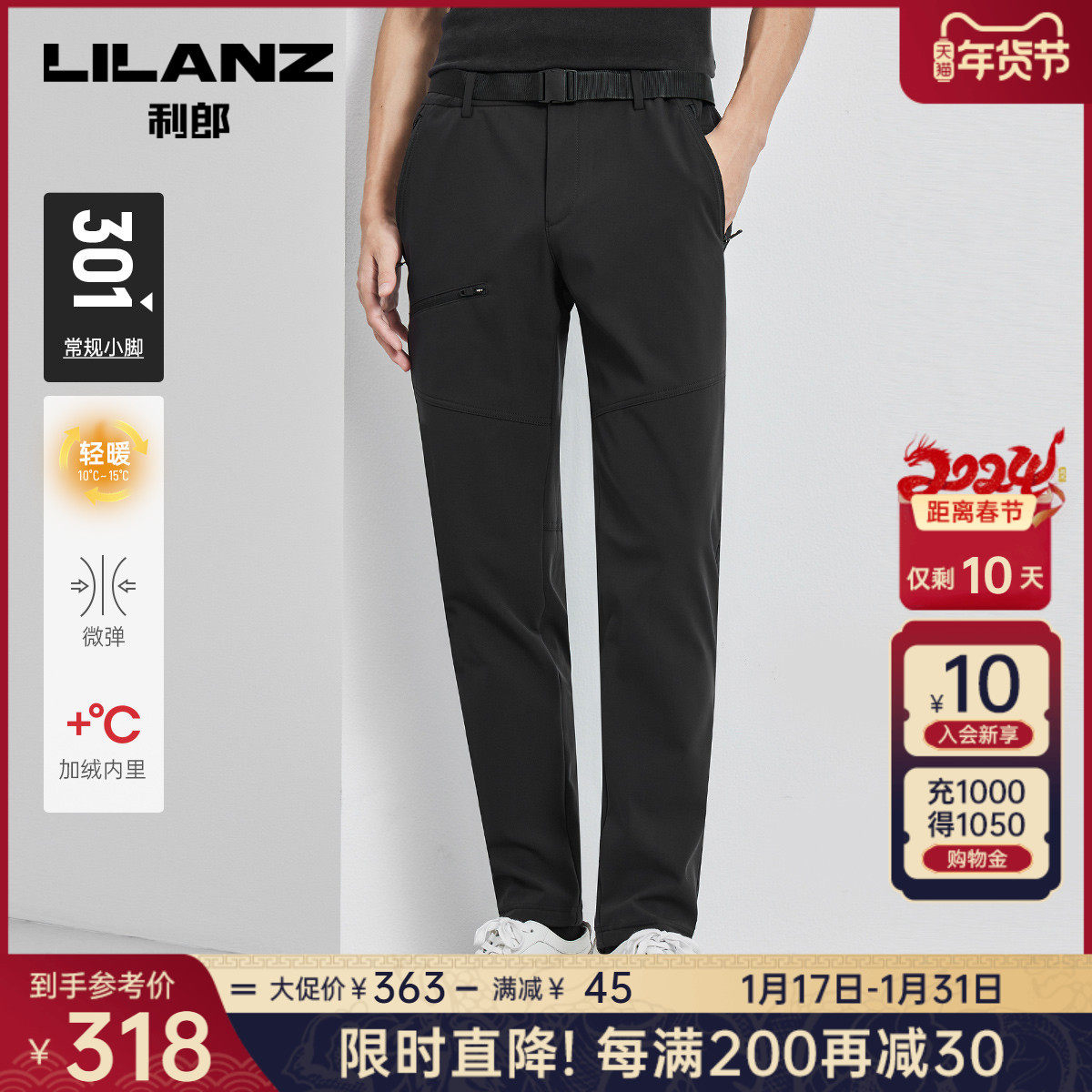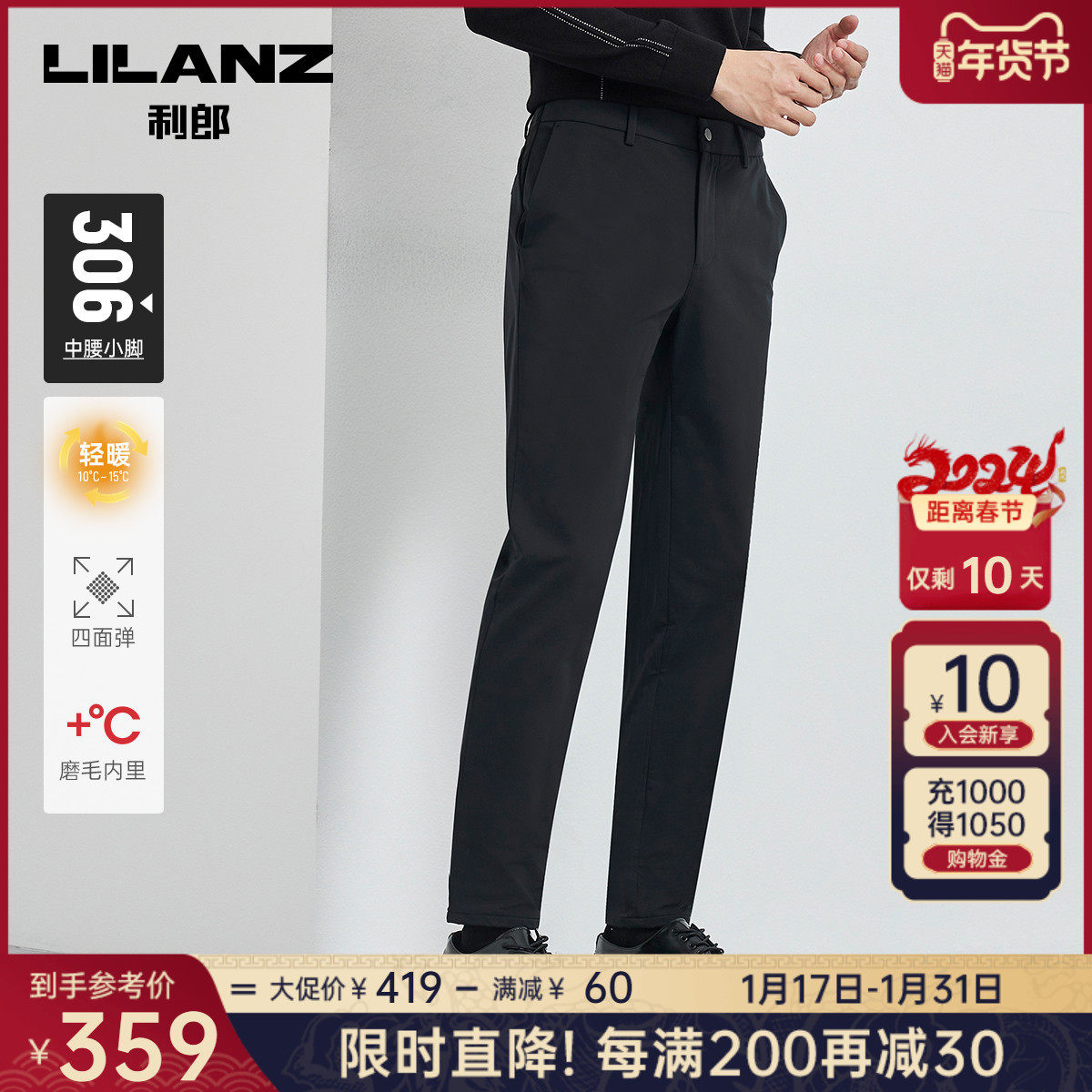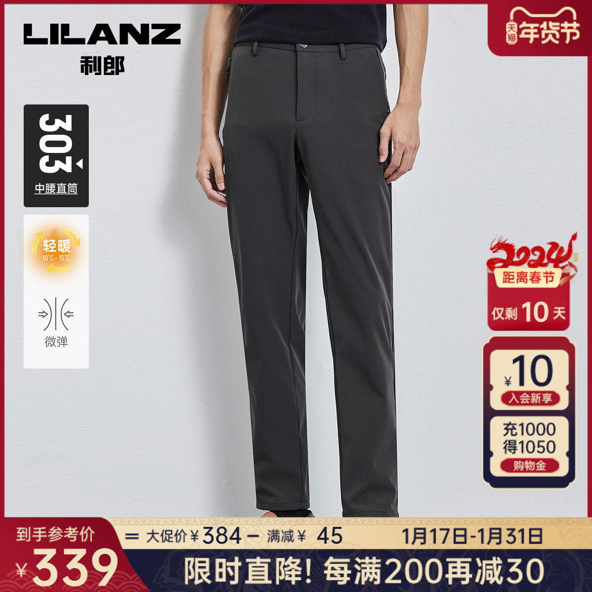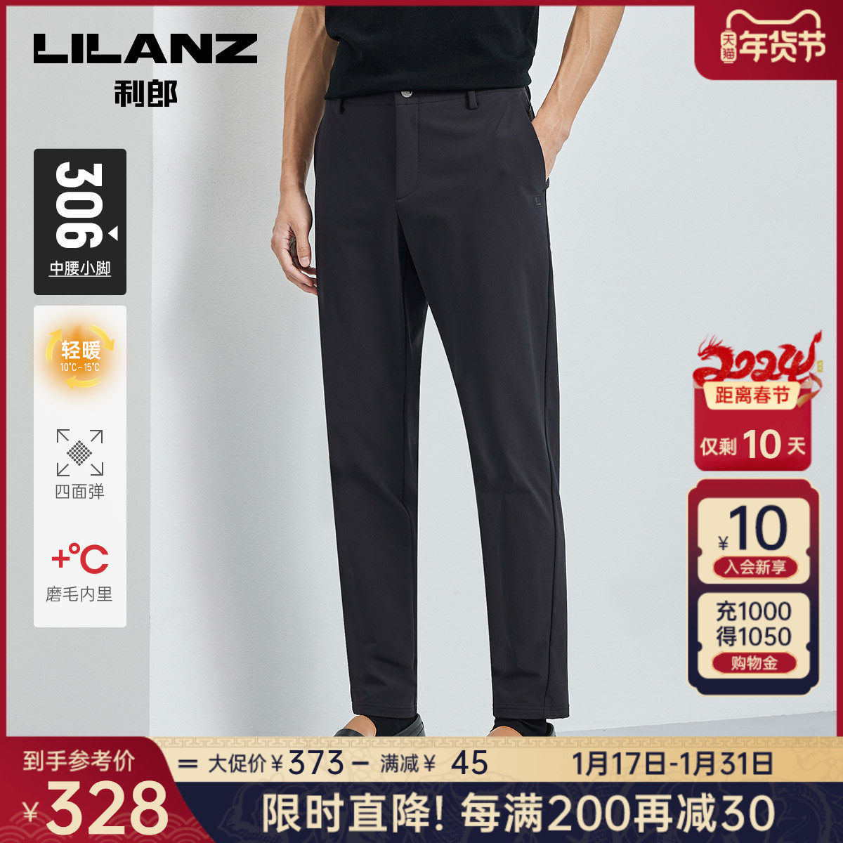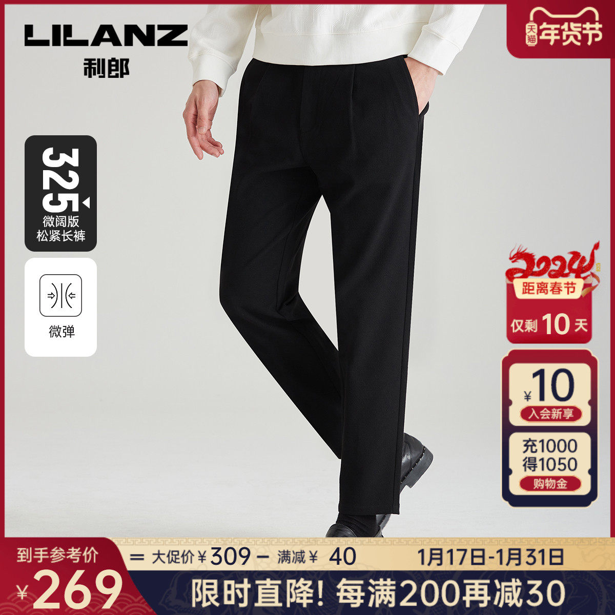 【运动松紧裤】利郎男士休闲裤2023冬季通勤轻便弹力舒适长裤子男