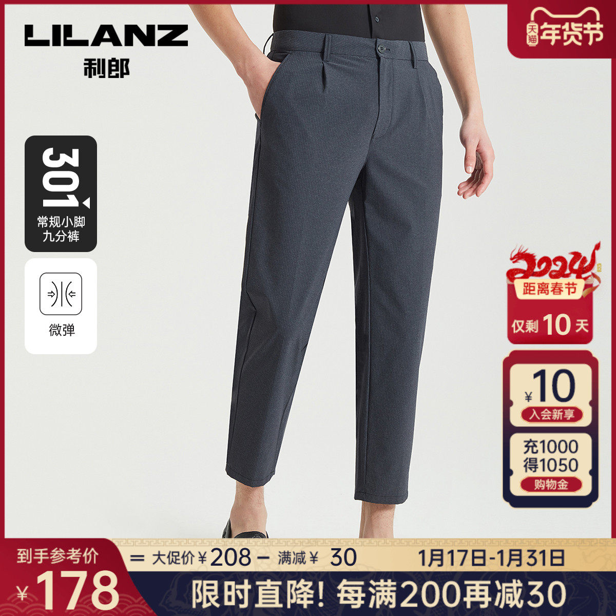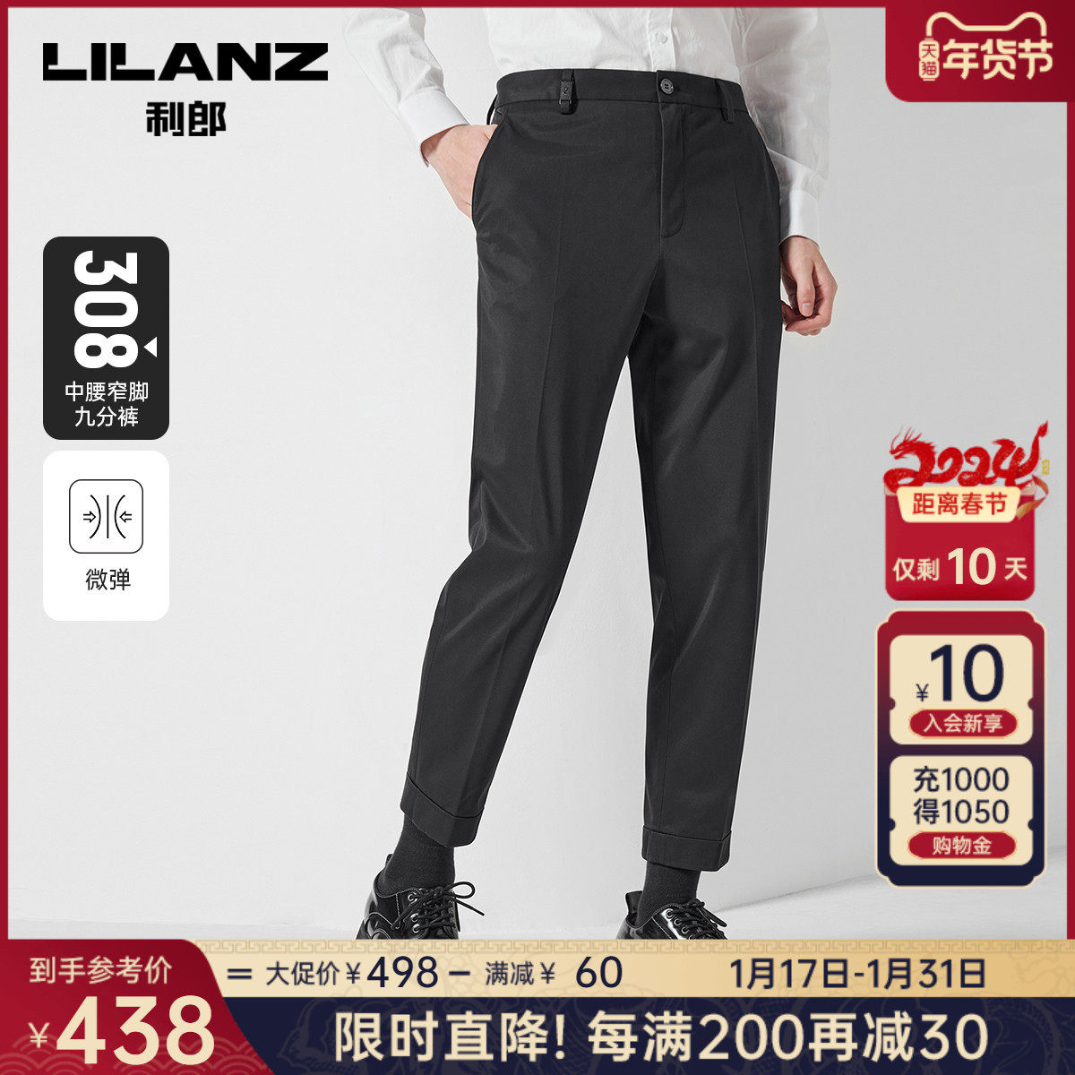 【冰藻泥面料】利郎青年商务休闲裤2024春季弹力凉感通勤九分裤男