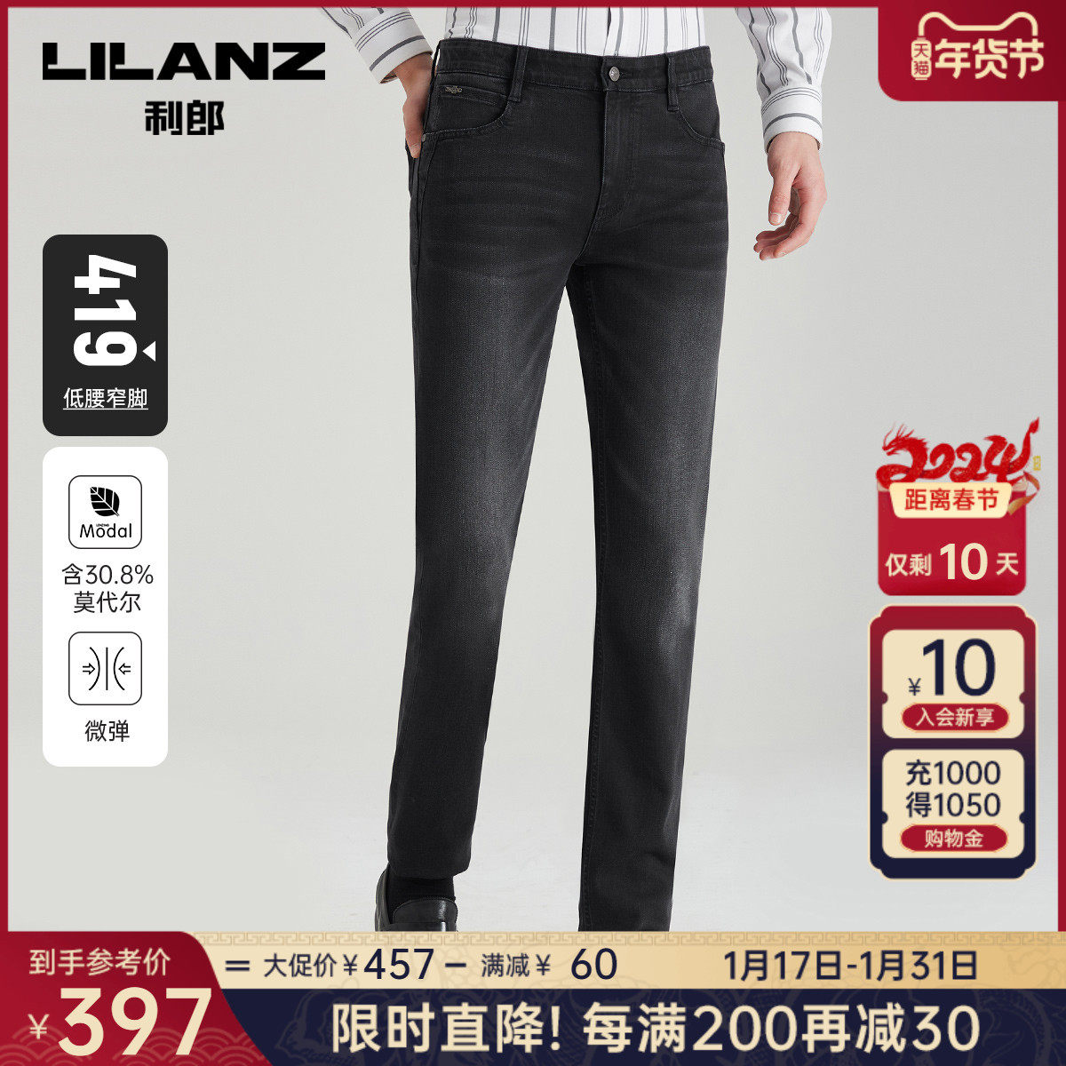 【莫代尔】 利郎官方 牛仔裤男士2023秋商务小脚裤弹力休闲裤子男