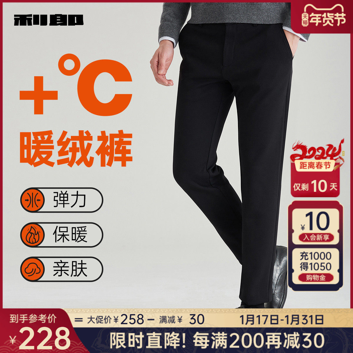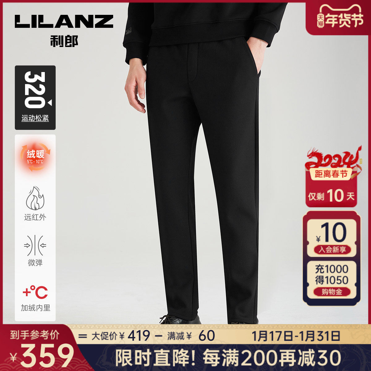 【加绒保暖裤】利郎男士休闲裤2023冬季运动松紧弹力舒适长裤子男