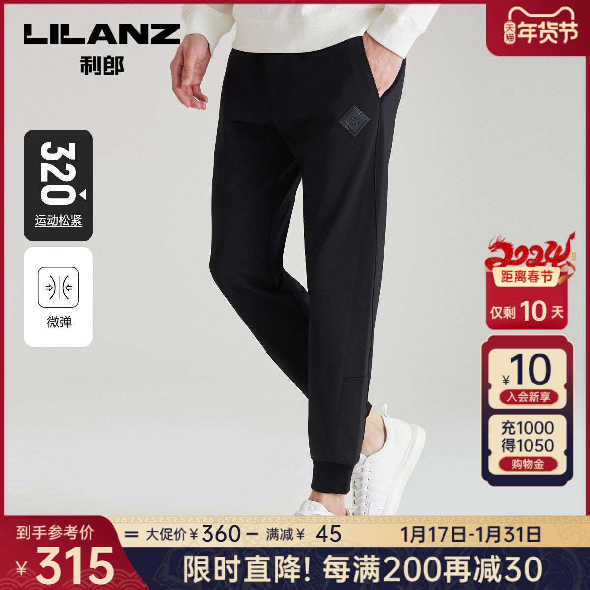 利郎官方 休闲卫裤男士运动松紧腰抽绳束脚弹力2023秋季九分裤子