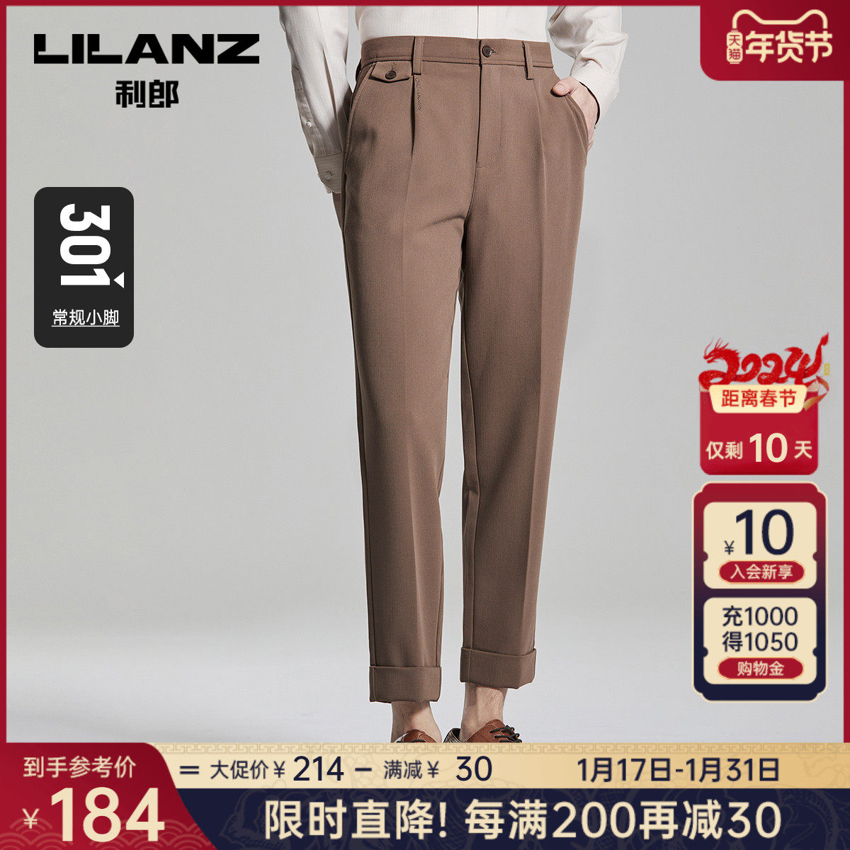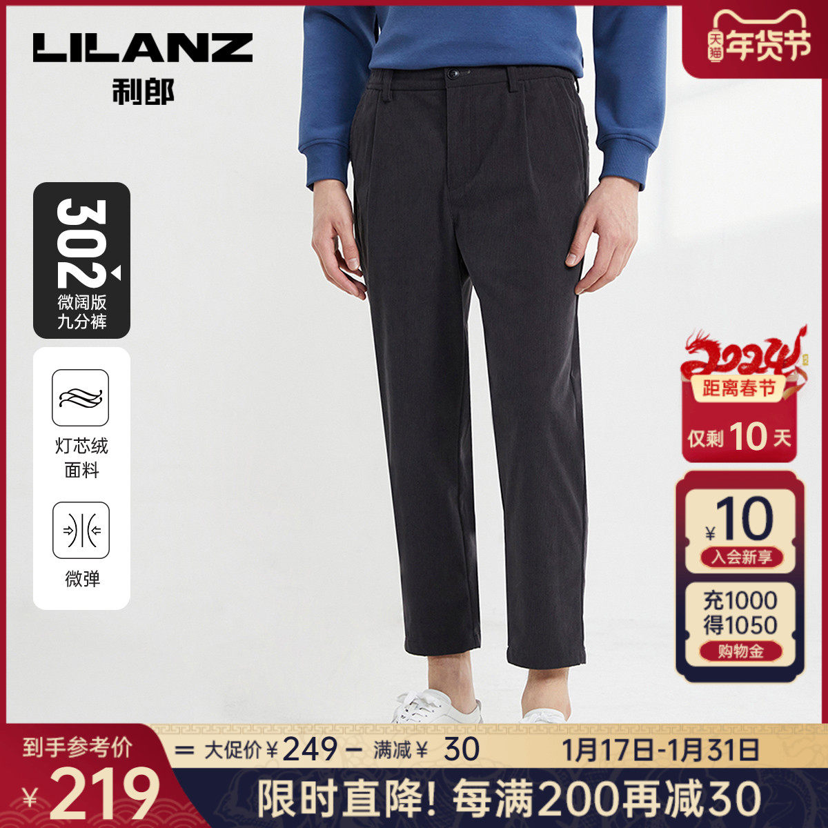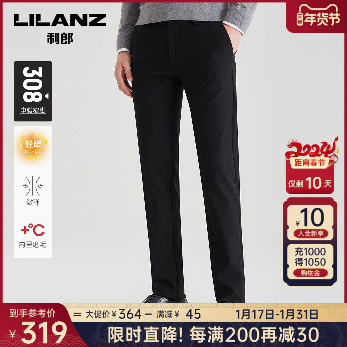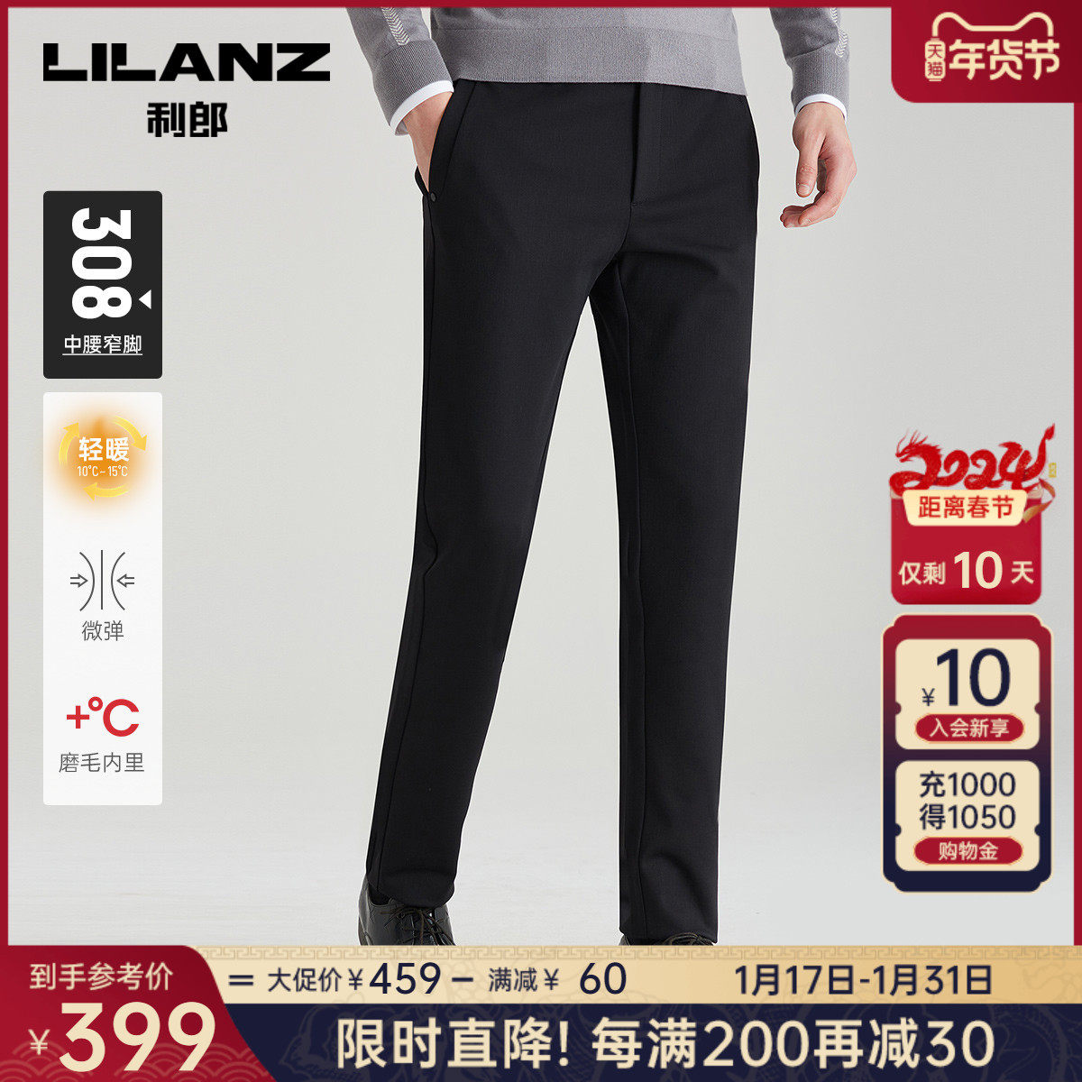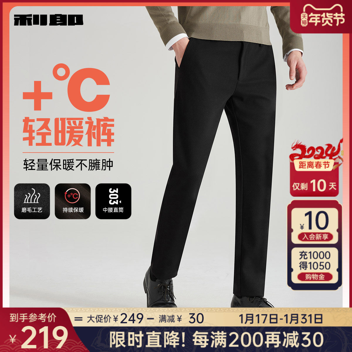 【磨毛内里】利郎官方 休闲裤男2023秋冬商务中腰小脚男士裤子