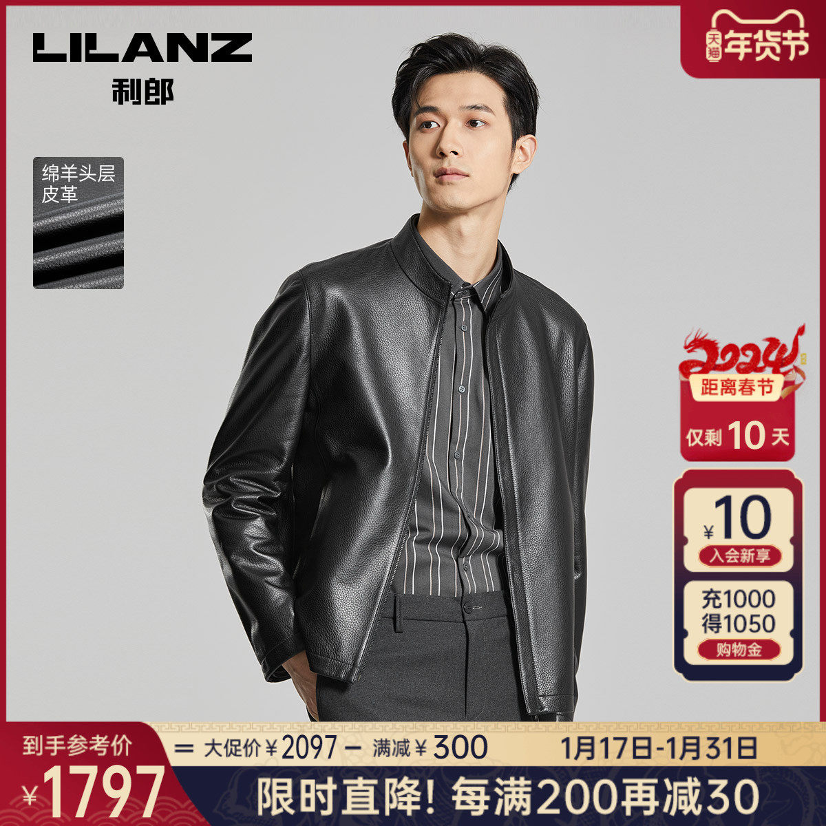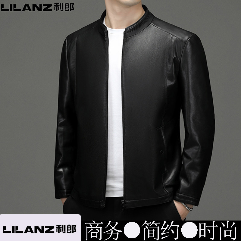 利郎官方绵羊皮皮衣男士商务休闲立领春秋季新款夹克真皮外套