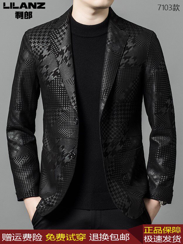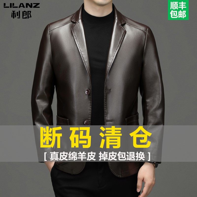 利郎真皮皮衣男士秋冬新款中青年绵羊皮商务西装简约修身西服外套