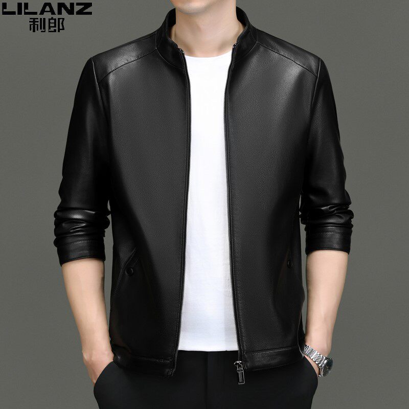 利郎官方正品皮衣男2023春秋新款中青年真皮立领商务休闲夹克外套