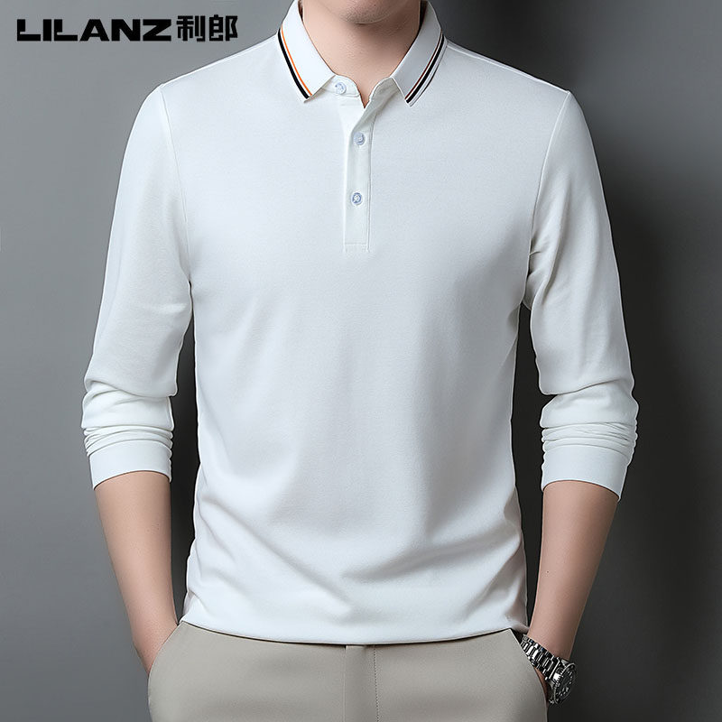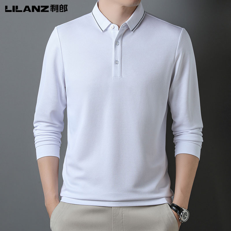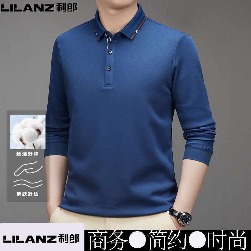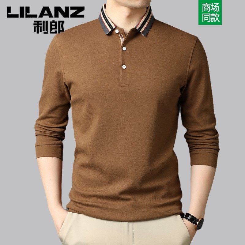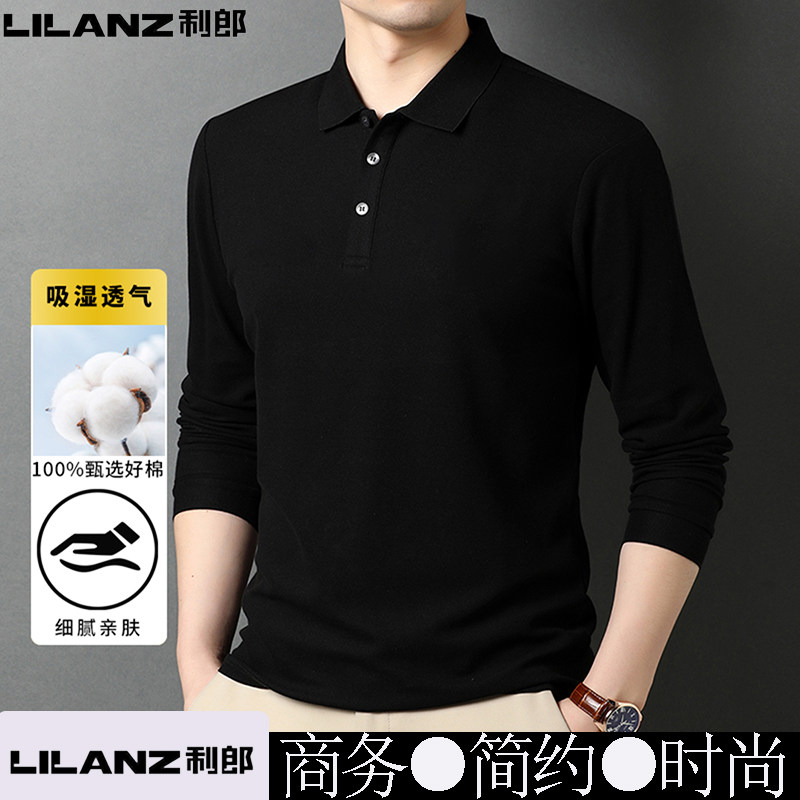 利郎高端长袖t恤男士中青年秋季商务休闲纯棉透气翻领纯色polo衫