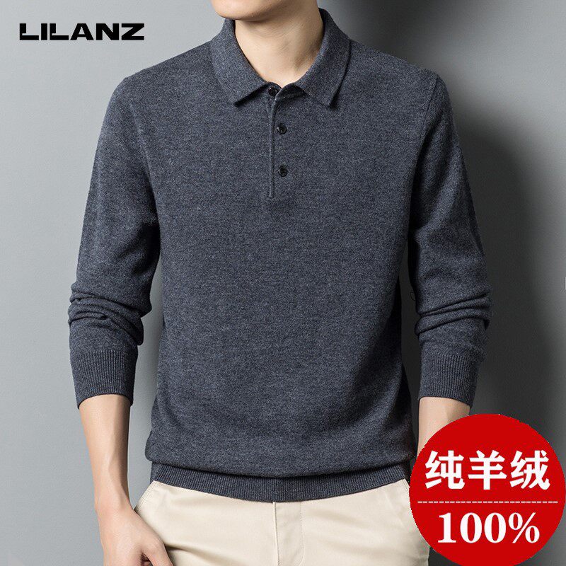 利郎山羊绒衫男秋冬新款羊毛针织衫中年百搭纯色polo衫男打底毛衣