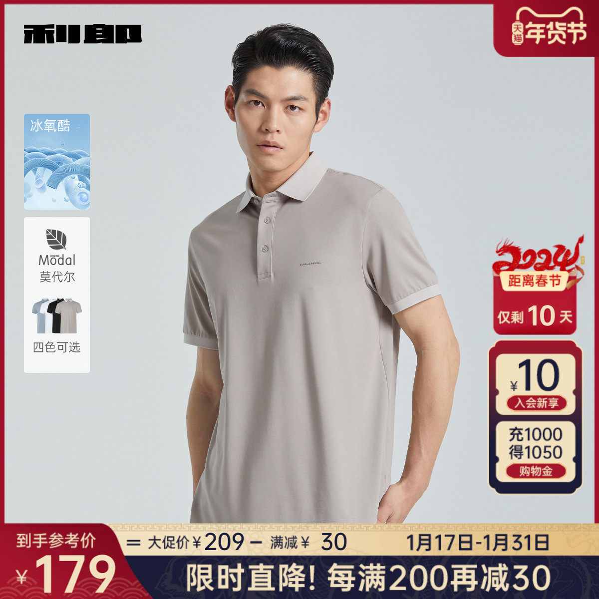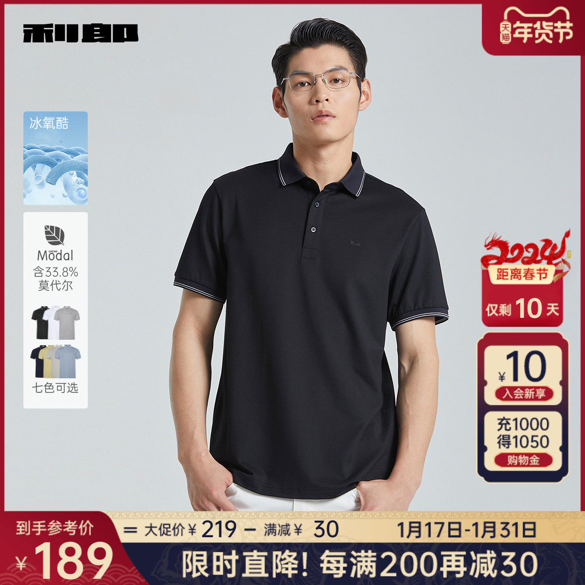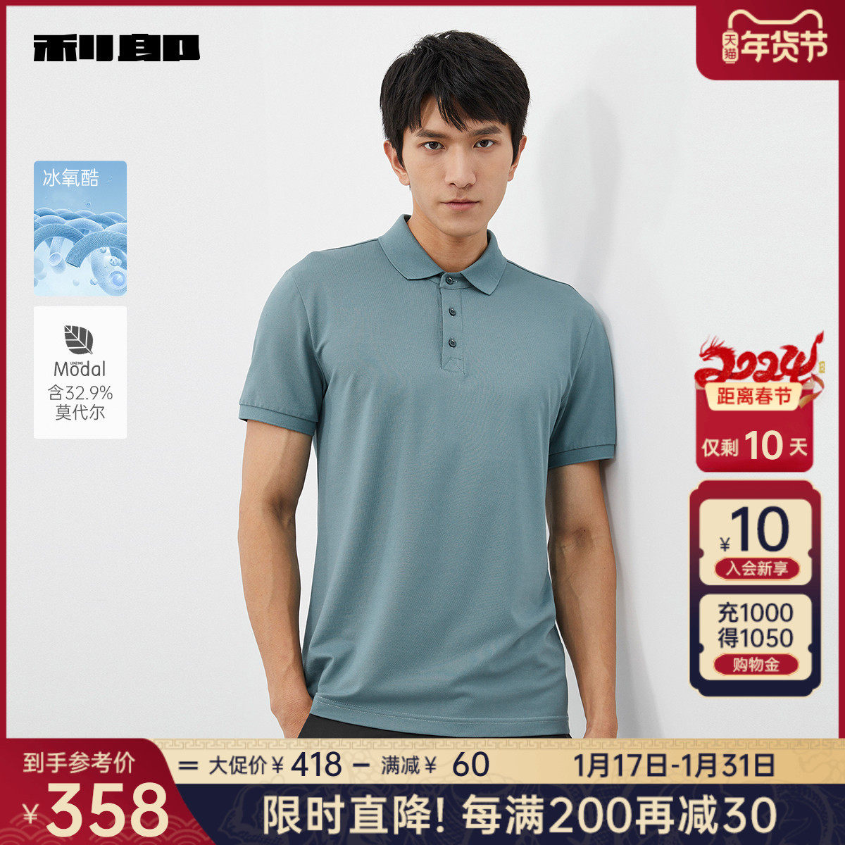 【冰氧酷】利郎官方 短袖polo衫男士莫代尔2024夏翻领商务T恤男装