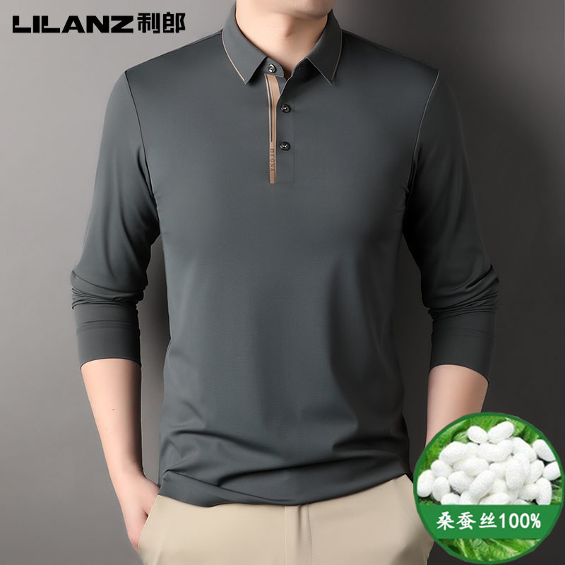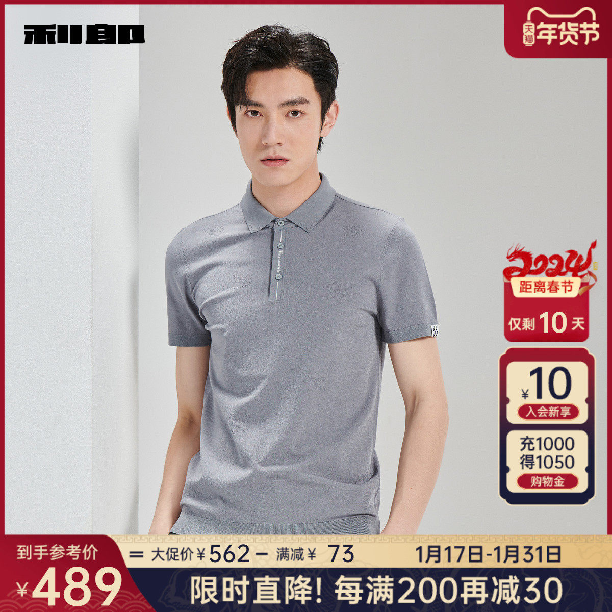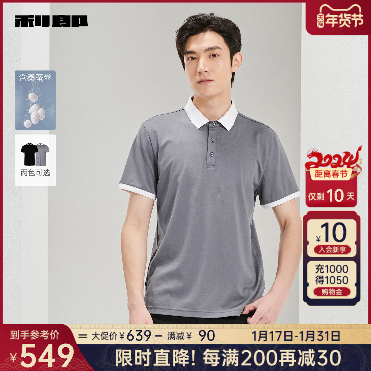 【桑蚕丝】利郎官方翻领T恤男2024夏商务休闲灰色男士质感POLO衫