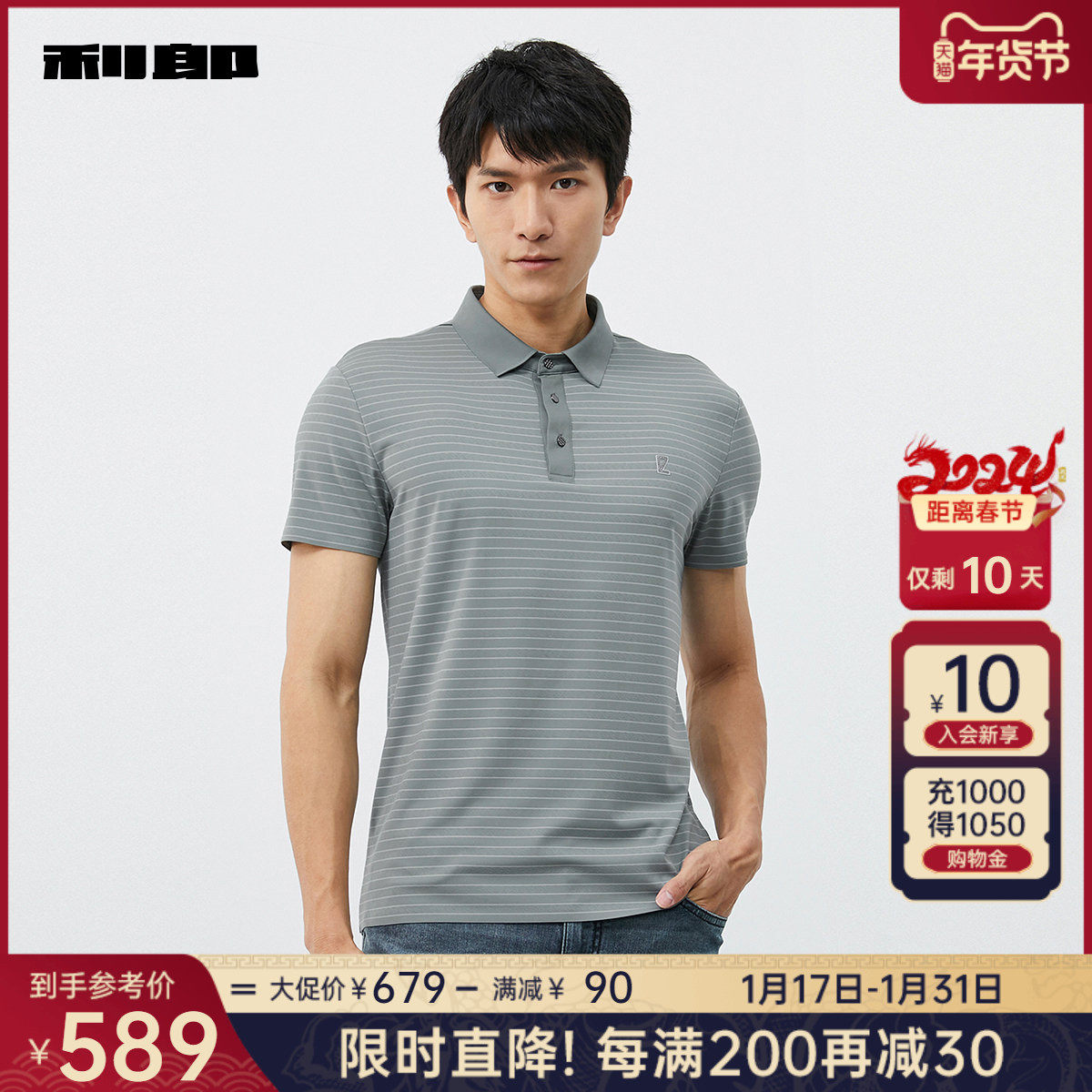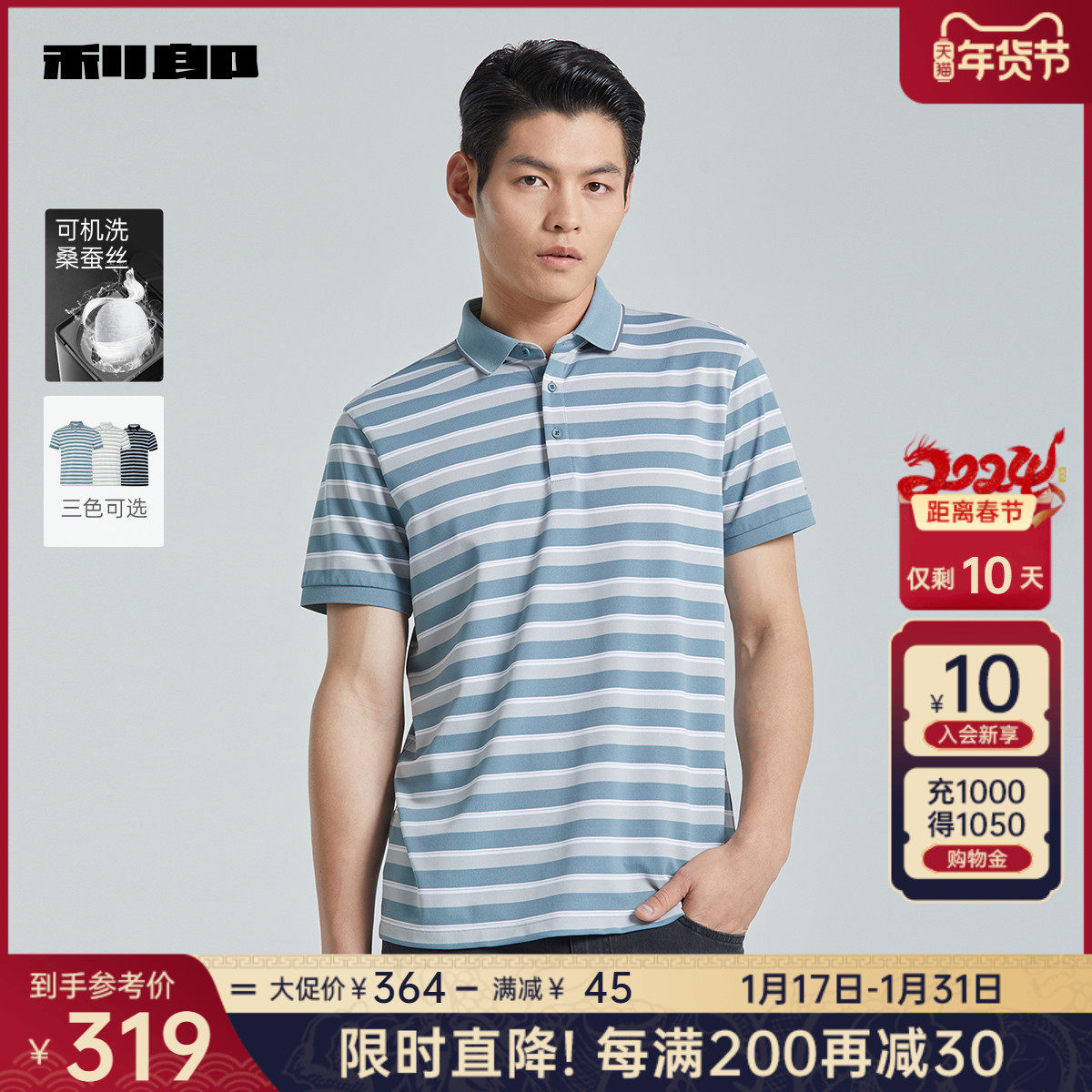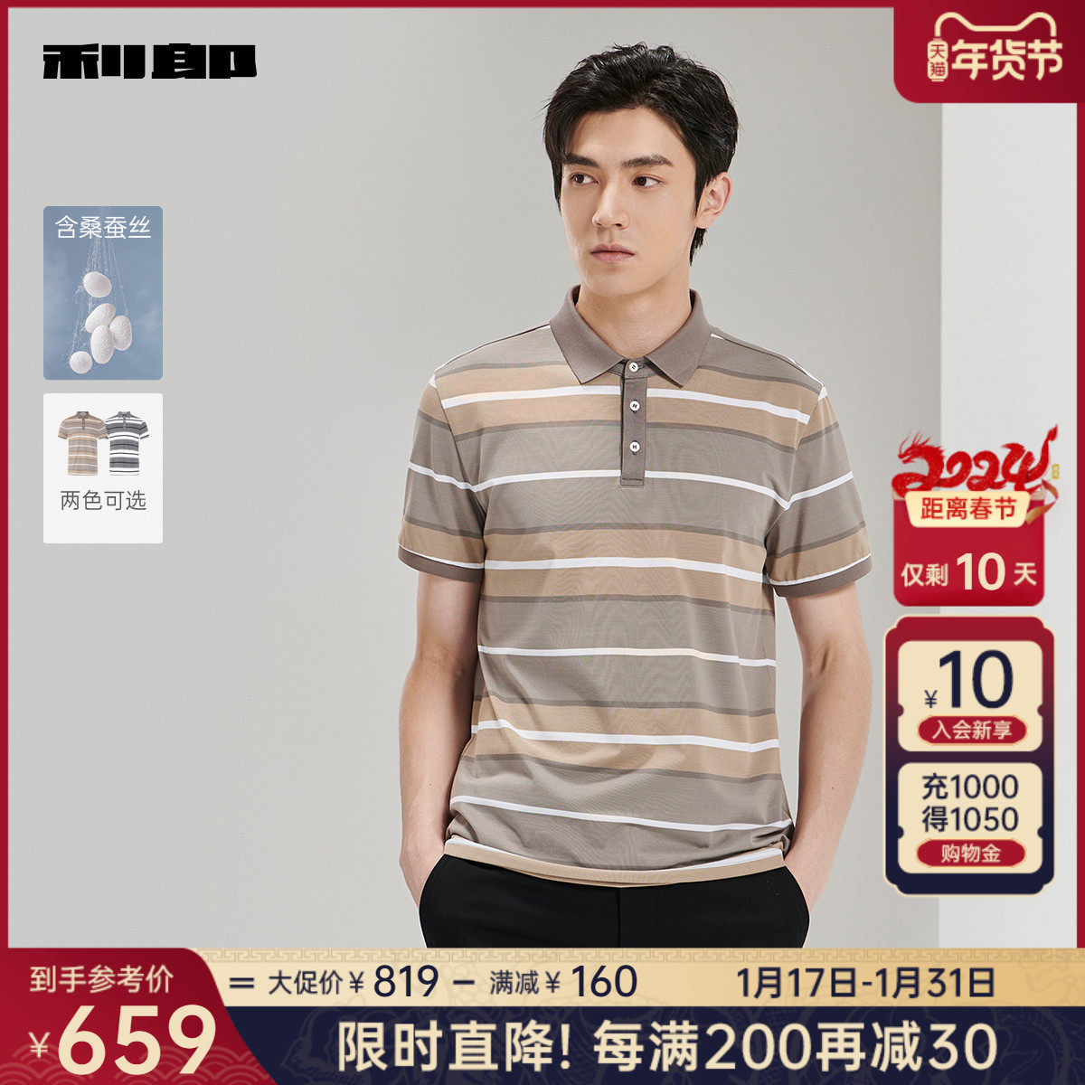 【桑蚕丝】利郎官方 短袖polo衫男士商务休闲条纹弹力2024夏T恤男
