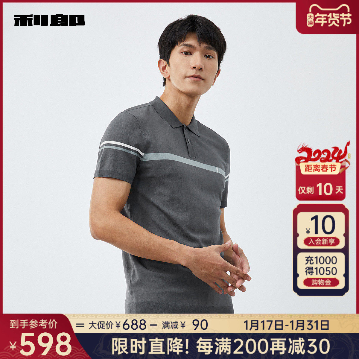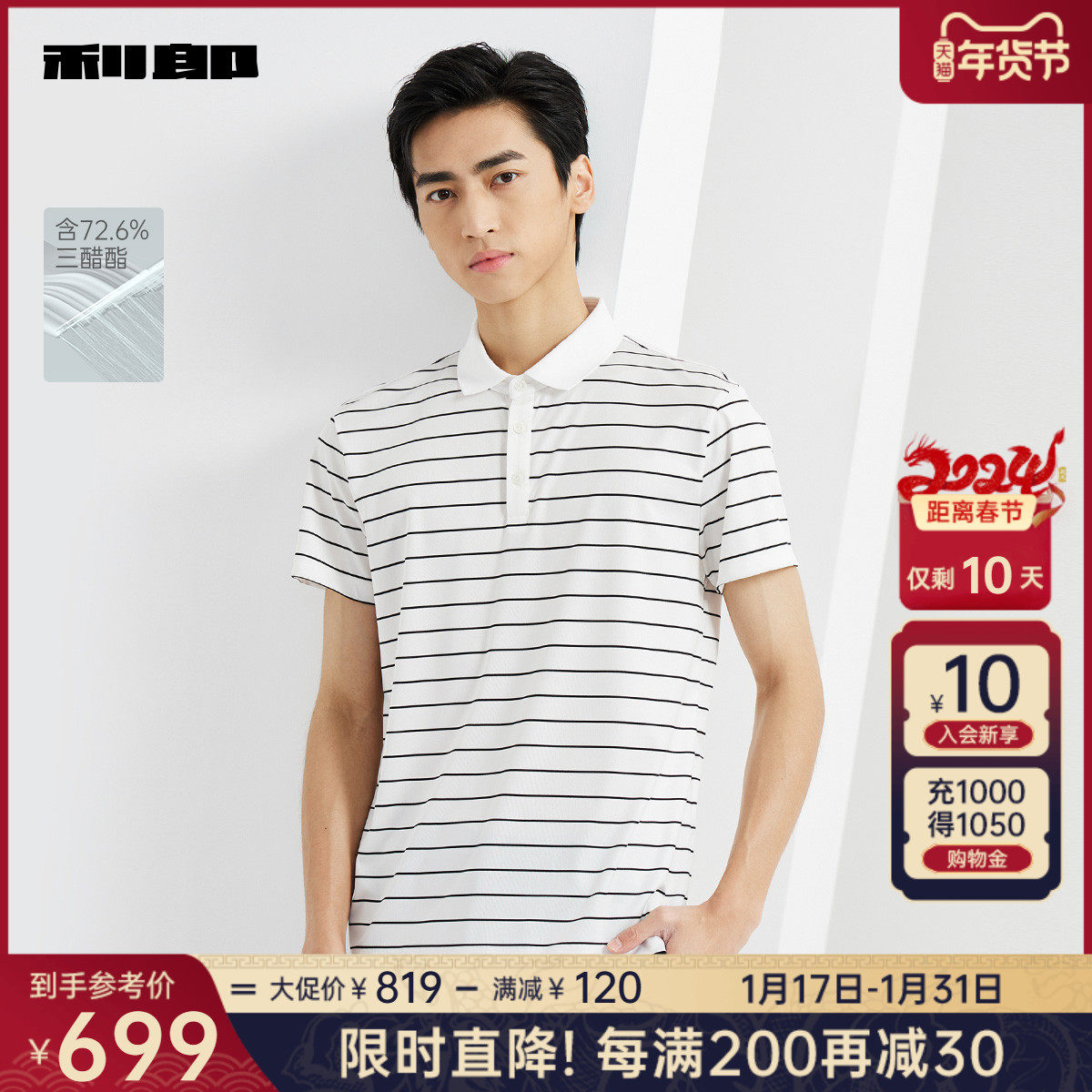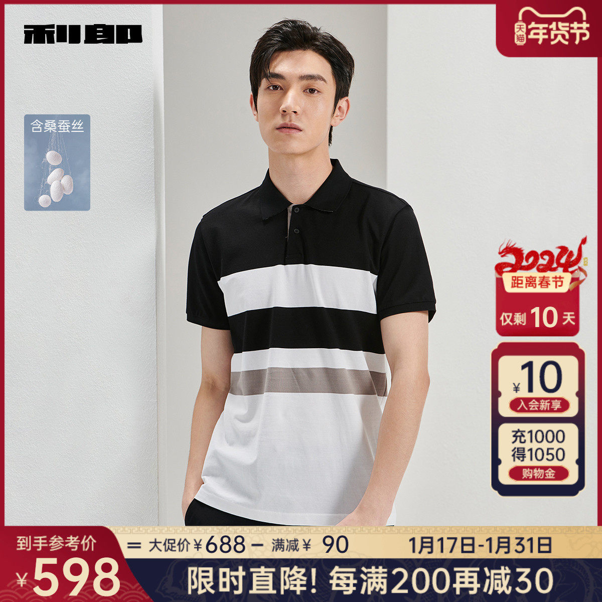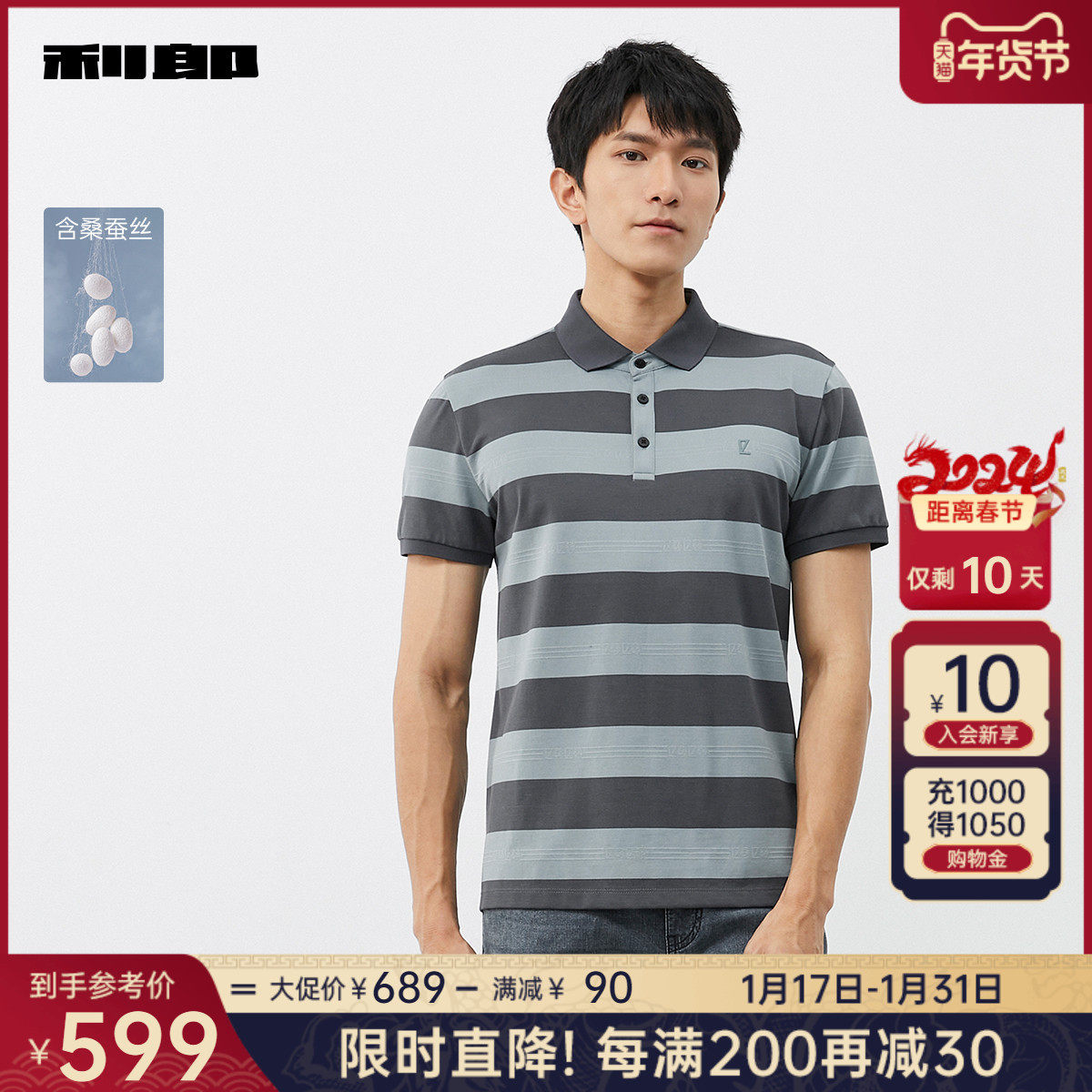 【桑蚕丝】利郎官方 短袖polo衫男士商务休闲条纹弹力2024夏T恤男