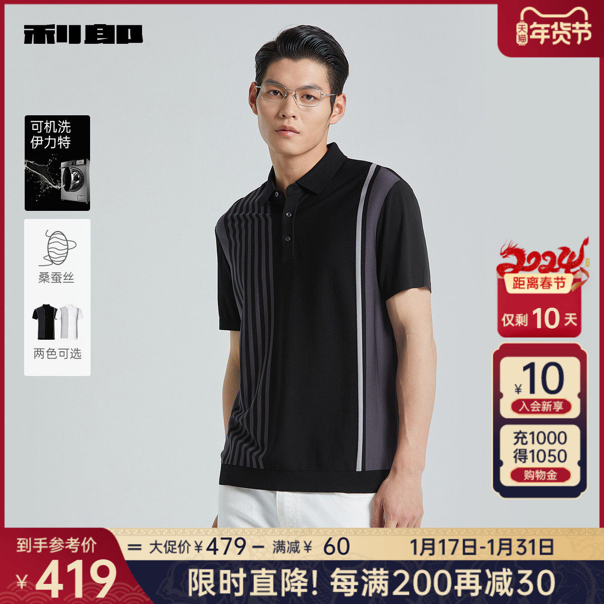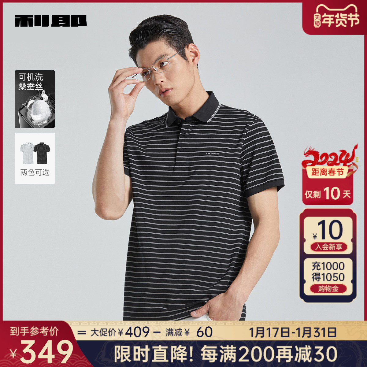 【可机洗桑蚕丝】利郎官方 短袖polo衫条纹2024夏新款商务男装T恤