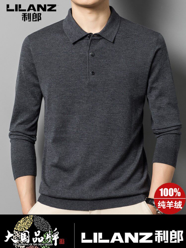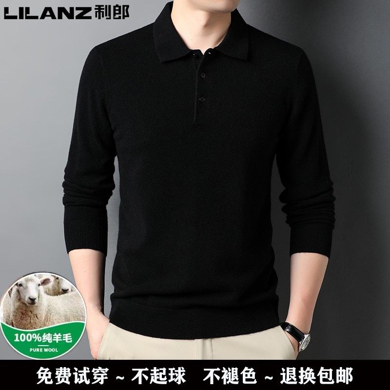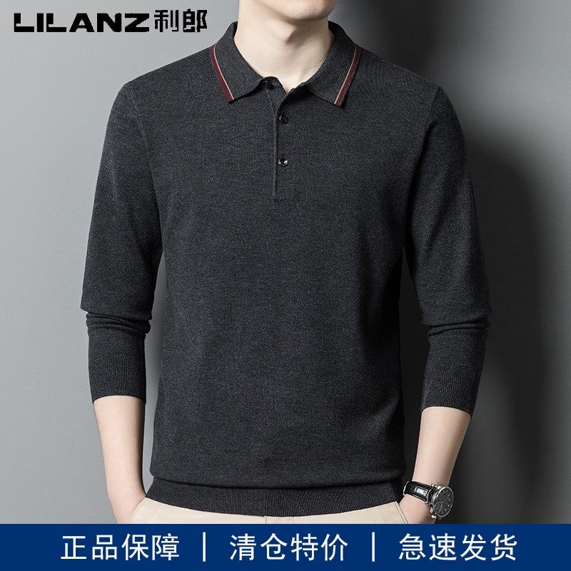 利郎男装官方正品纯羊毛衫长袖翻领毛衣中年爸爸打底针织POLO衫t