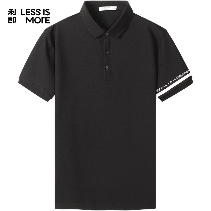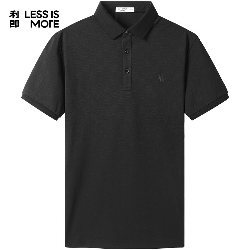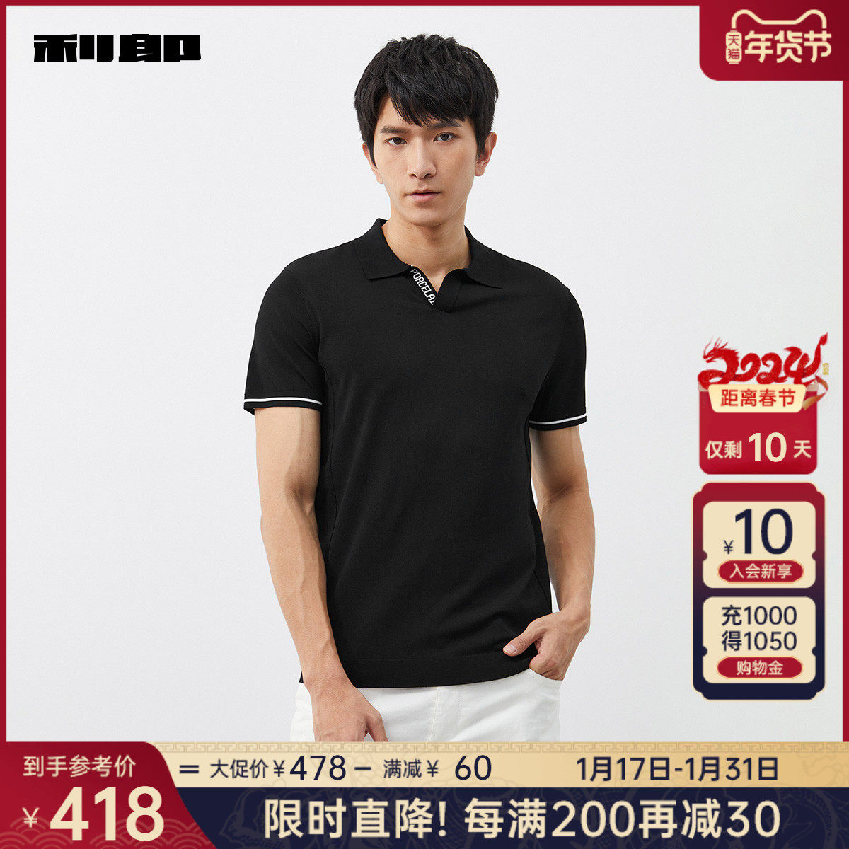 【针织】利郎官方 翻领T恤男2024夏季商务黑色字母提花男士POLO衫