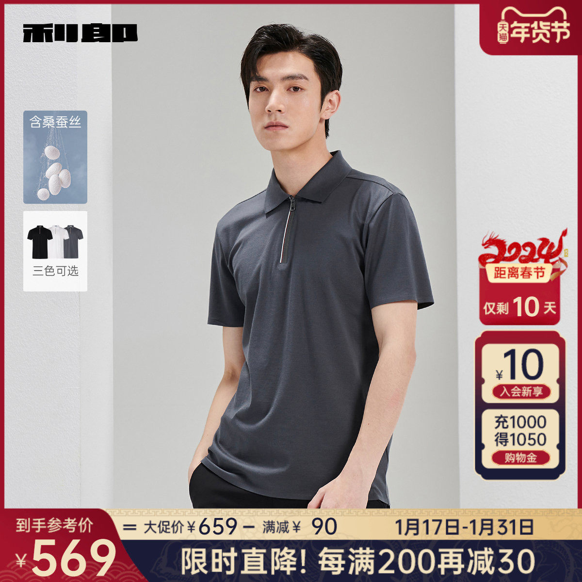 【桑蚕丝】利郎官方 短袖Polo衫男士商务休闲拉链翻领2024夏季T恤