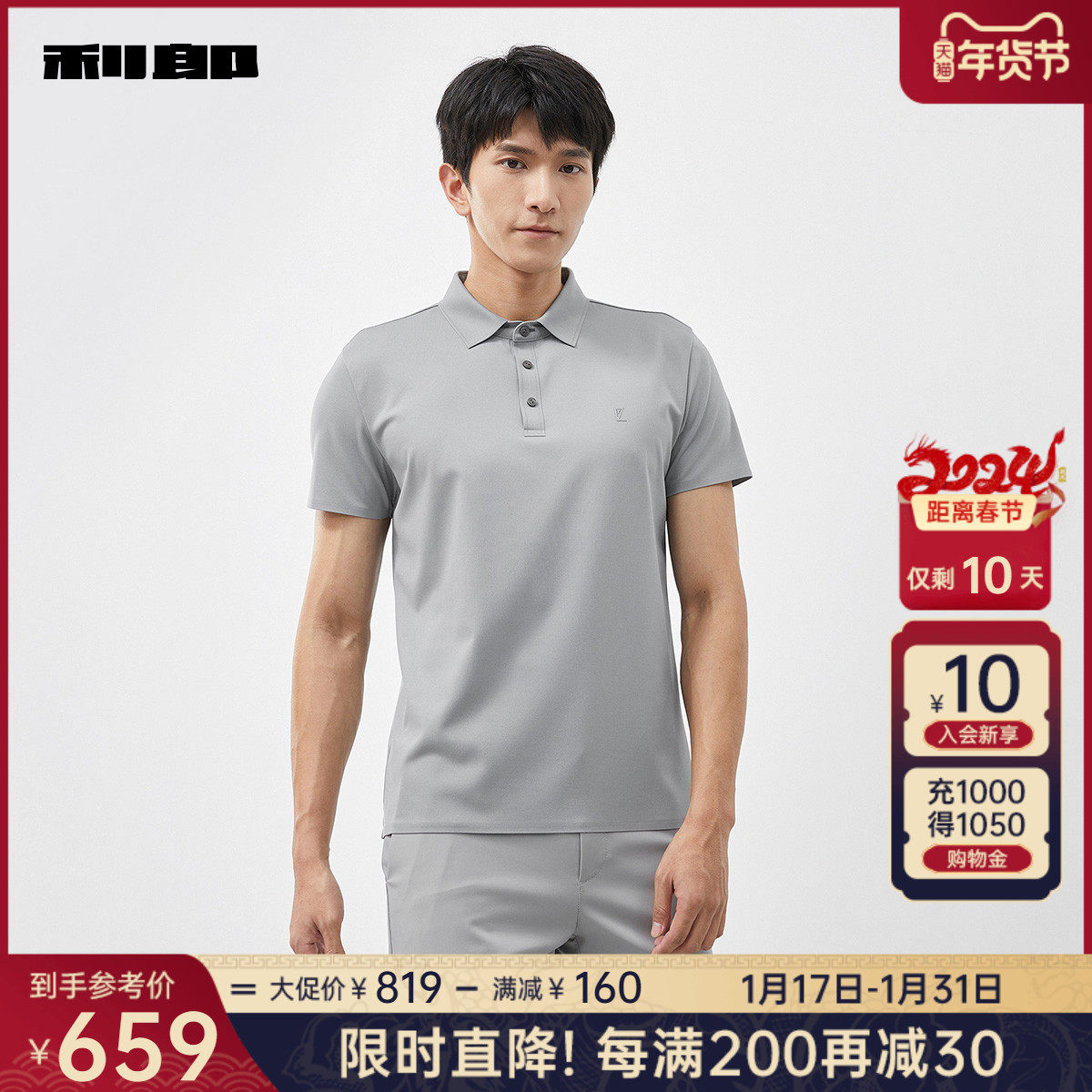 利郎官方 短袖polo衫男士商务休闲灰色2024夏新款弹力男装T恤上衣