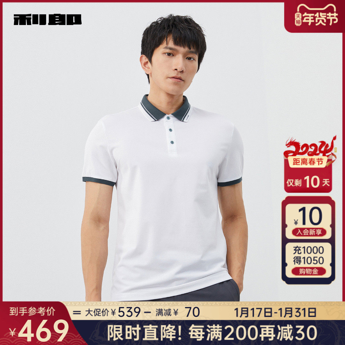利郎官方 翻领T恤男2024夏商务休闲撞色领男士白色弹力POLO衫