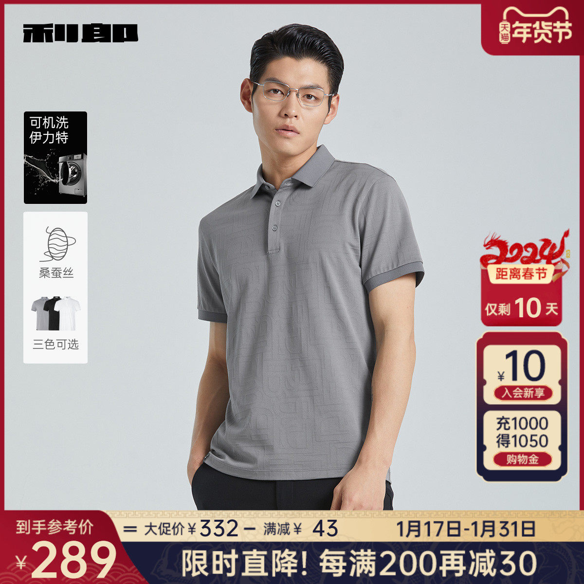 【桑蚕丝】利郎官方 短袖polo衫商务翻领2024夏半袖T恤男装上衣男