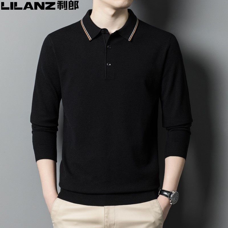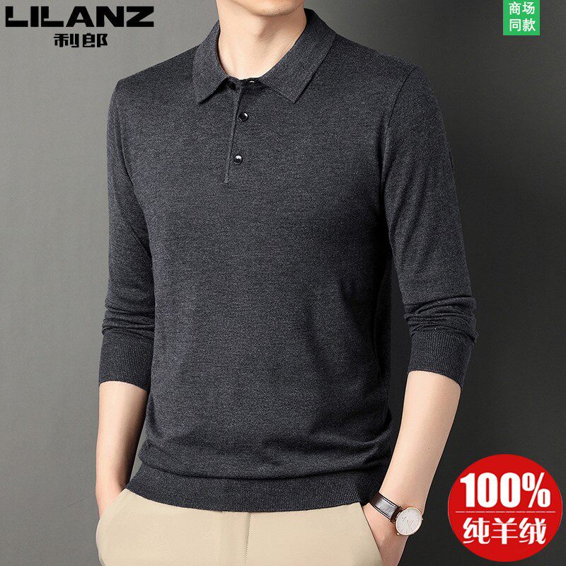 利郎官方100%纯羊绒长袖t恤男士翻领针织衫打底衫毛衣羊毛POLO衫T