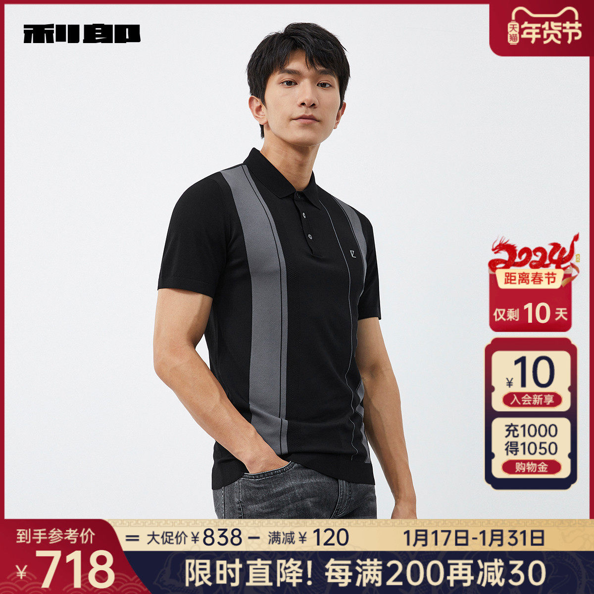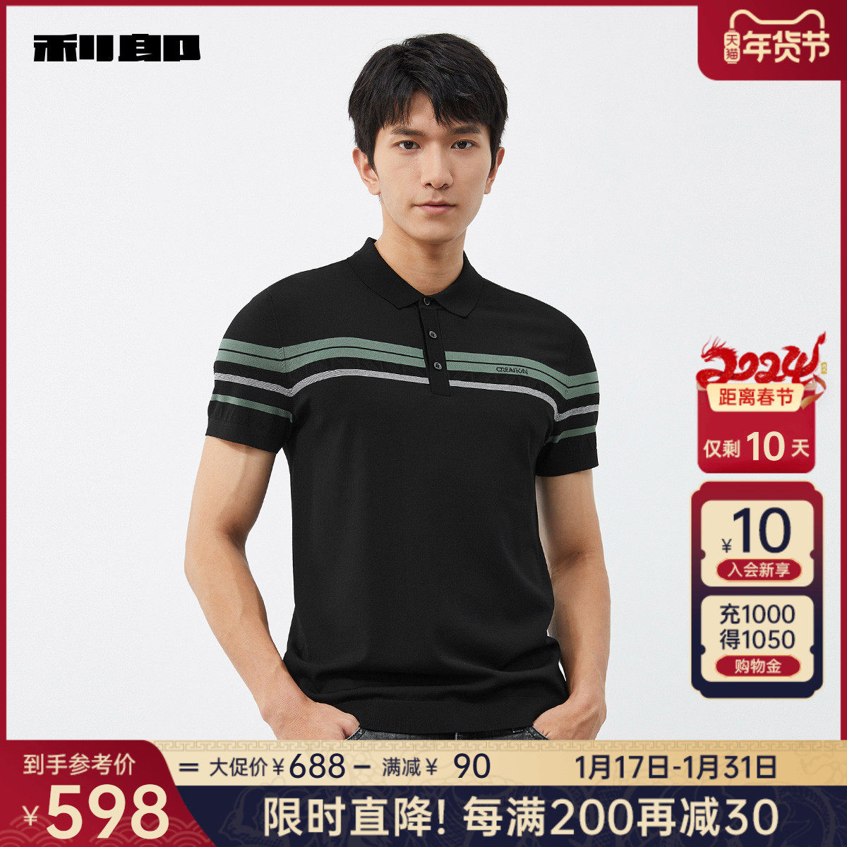 【可机洗/桑蚕丝】利郎 针织短袖Polo衫男士休闲条纹2024夏季T恤
