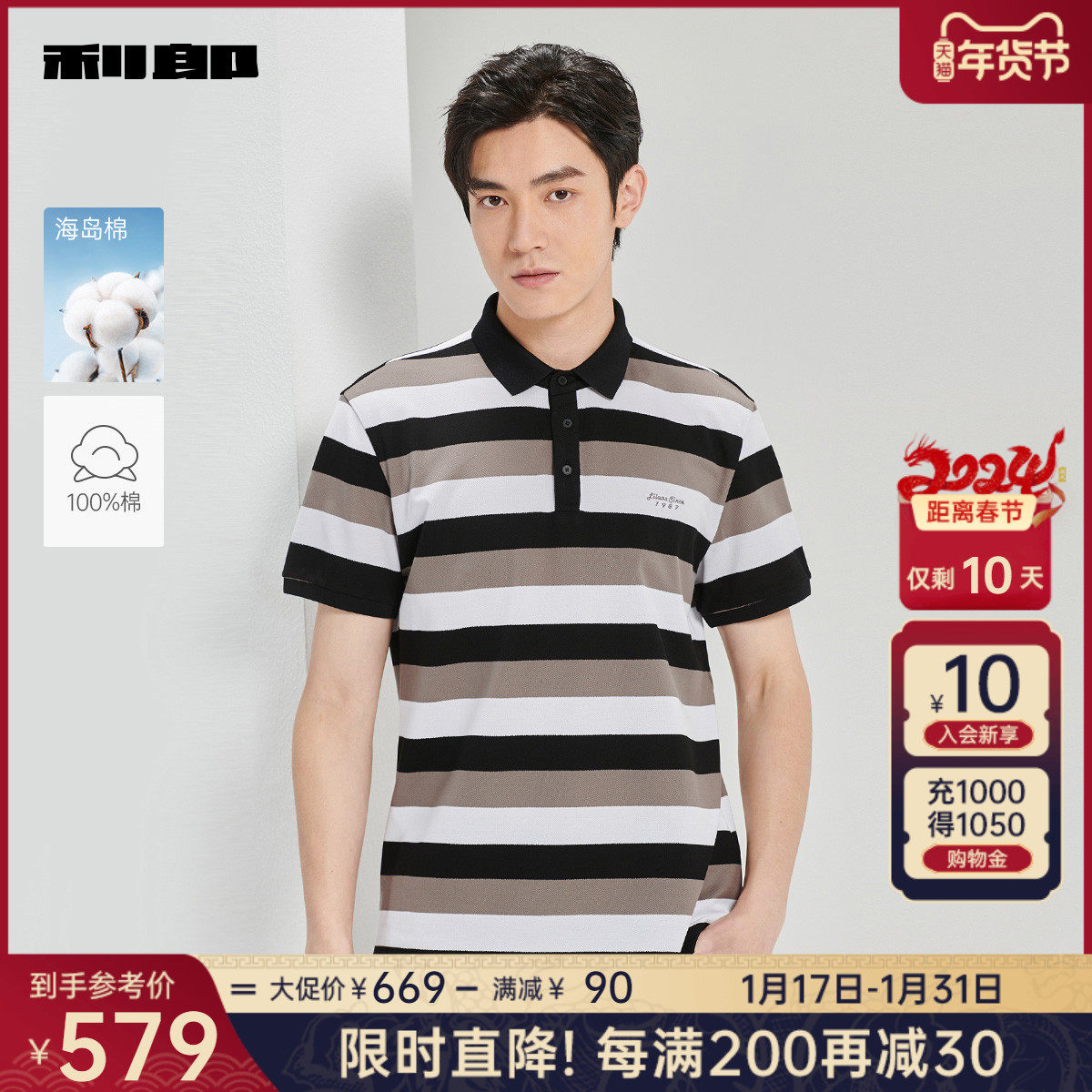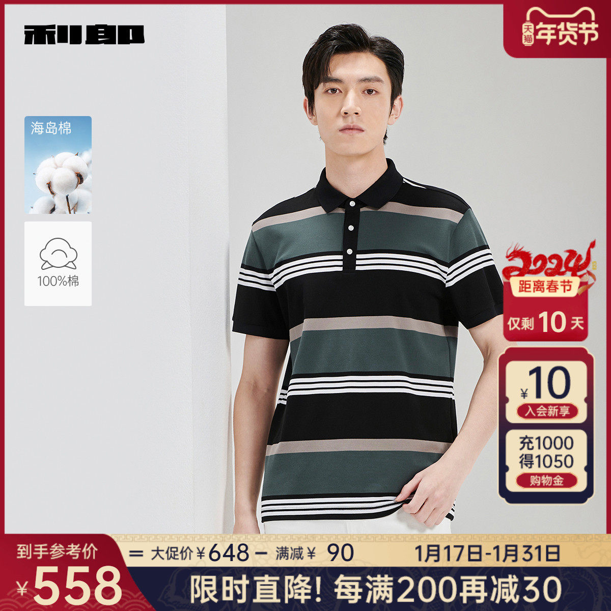 【海岛棉】利郎官方 翻领T恤男2024夏季商务休闲条纹男士POLO衫